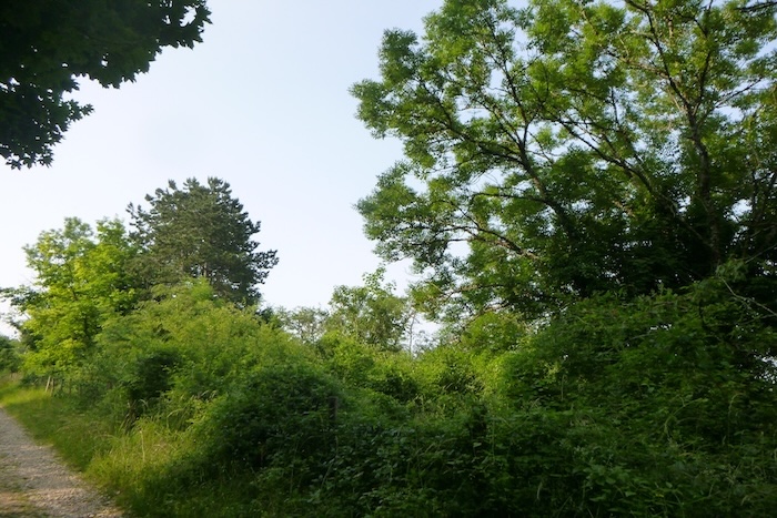 | Les jours de grande chaleur, l’ombre des frênes et des érables vient protéger le marcheur. Ces arbres, très présents et dominants dans la région, dessinent de longues voûtes de fraîcheur. Entre eux s’élèvent parfois des chênes plus discrets, sentinelles silencieuses mêlées à la troupe végétale. |