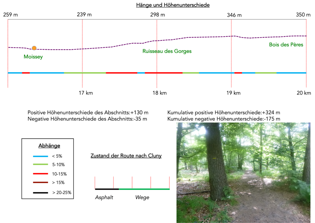 Weiter unten zweigt die Strecke ab und nimmt die Richtung nach Moissey, anderthalb Kilometer entfernt.