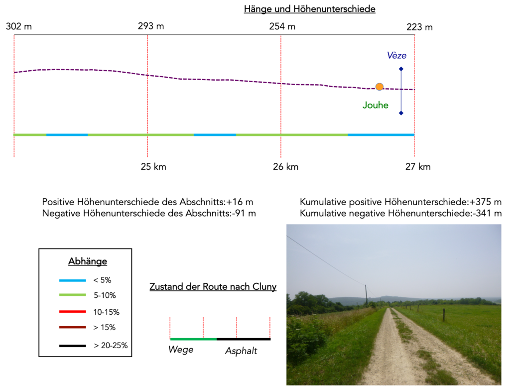 Für die tatsächlichen Höhenunterschiede lesen Sie bitte die Hinweise zur Kilometerangabe auf der Startseite noch einmal durch.