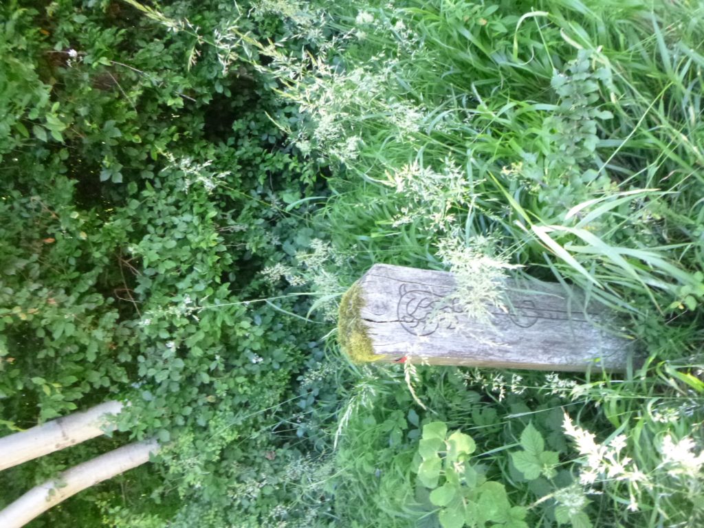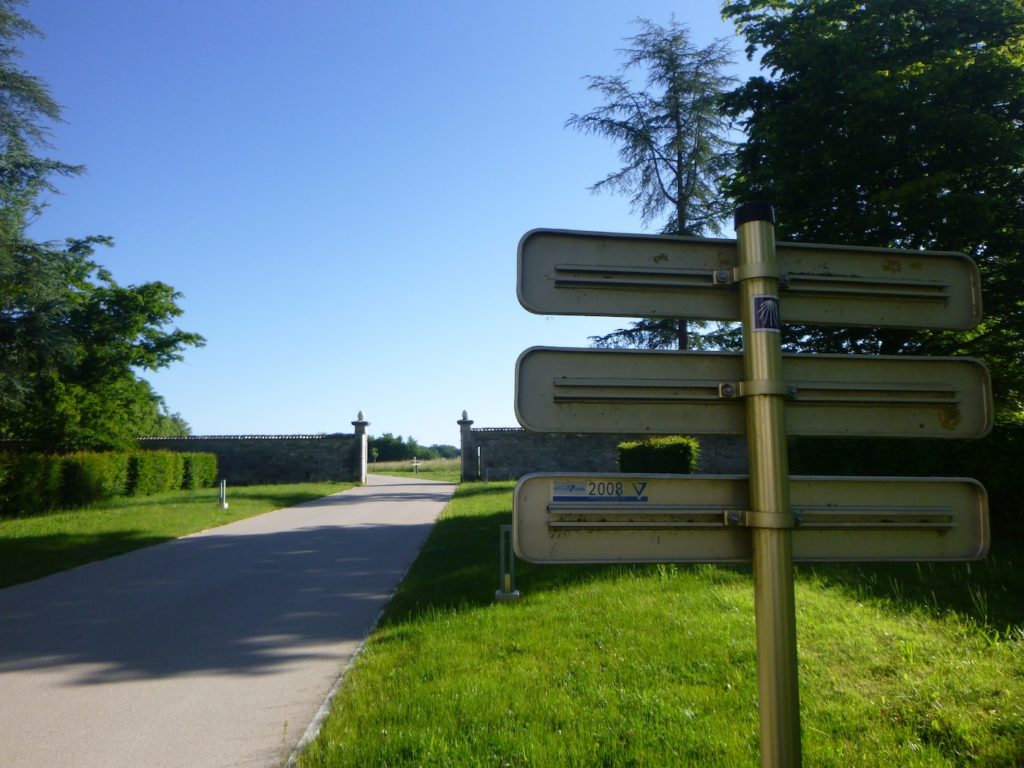 | Mais ce calme est trompeur. Vous venez d’entrer dans un vrai traquenard. Vous cherchez, vous inspectez, vous scrutez la moindre souche, le moindre poteau. Pas de coquille. Rien. Seulement une borne : celle du Chemin des Moines, signalée dès le départ par le guide. Elle est bien là… mais elle pointe dans la mauvaise direction. Car ici, un autre itinéraire, le circuit des Moines, vient brouiller les pistes. Alors vous sortez à nouveau votre boussole, ou votre GPS capricieux qui vous indique Gilly, sur la droite. Vous comprenez alors : dans ce labyrinthe champêtre, sans guide fiable, sans balise claire, il faut une intuition, ou un compagnon de route invisible. Car ni le petit guide des Amis de Compostelle, ni les cartes européennes n’offrent ici une vérité tangible. |