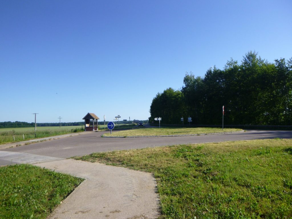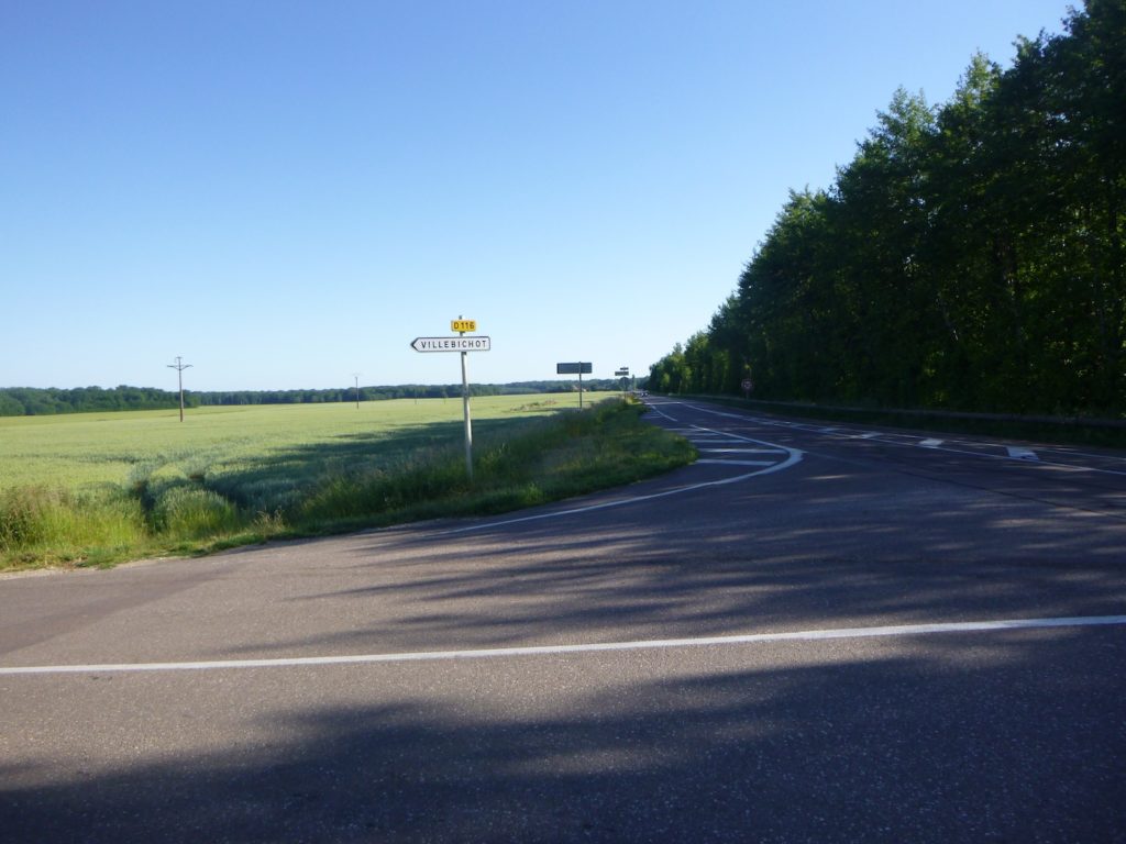 | Au carrefour, le parcours n’hésite pas et choisit résolument la route de Villebichot. Ce n’est pas un croisement anodin : c’est une bifurcation du réel, un discret clin d’œil au marcheur qui sait lire entre les lignes. |