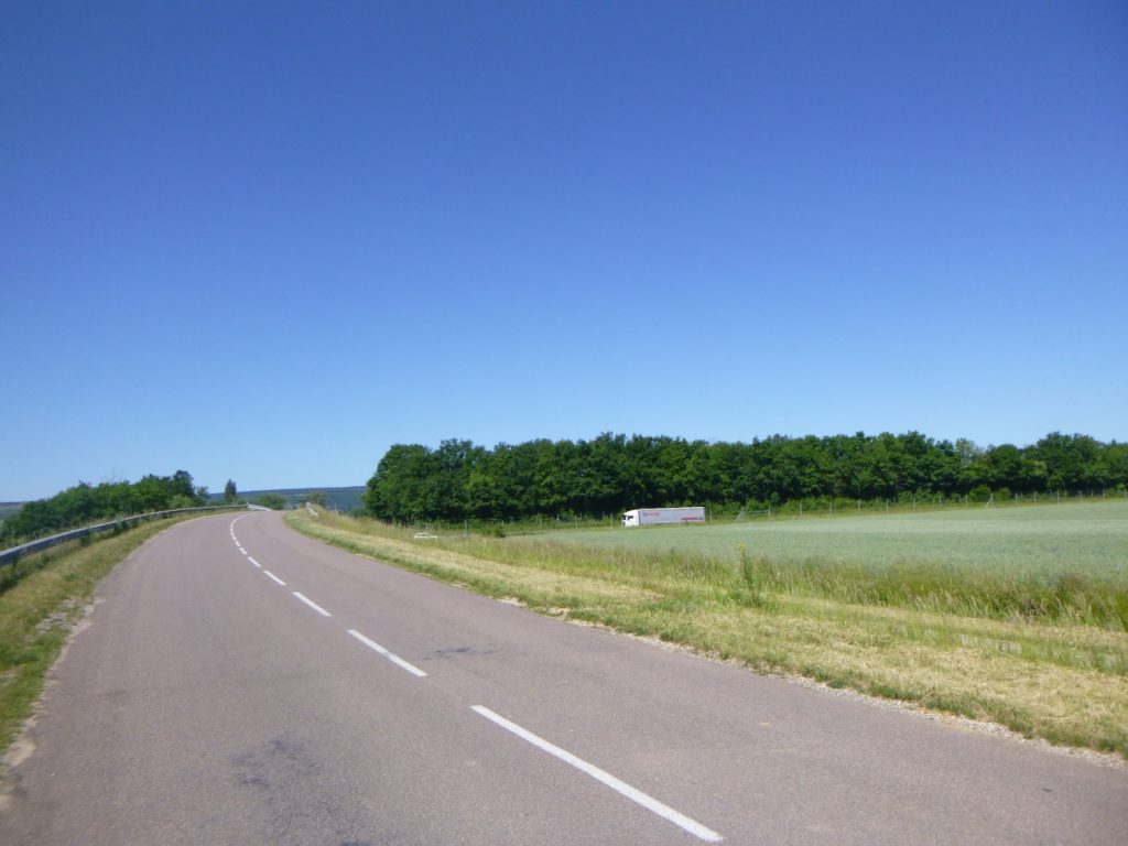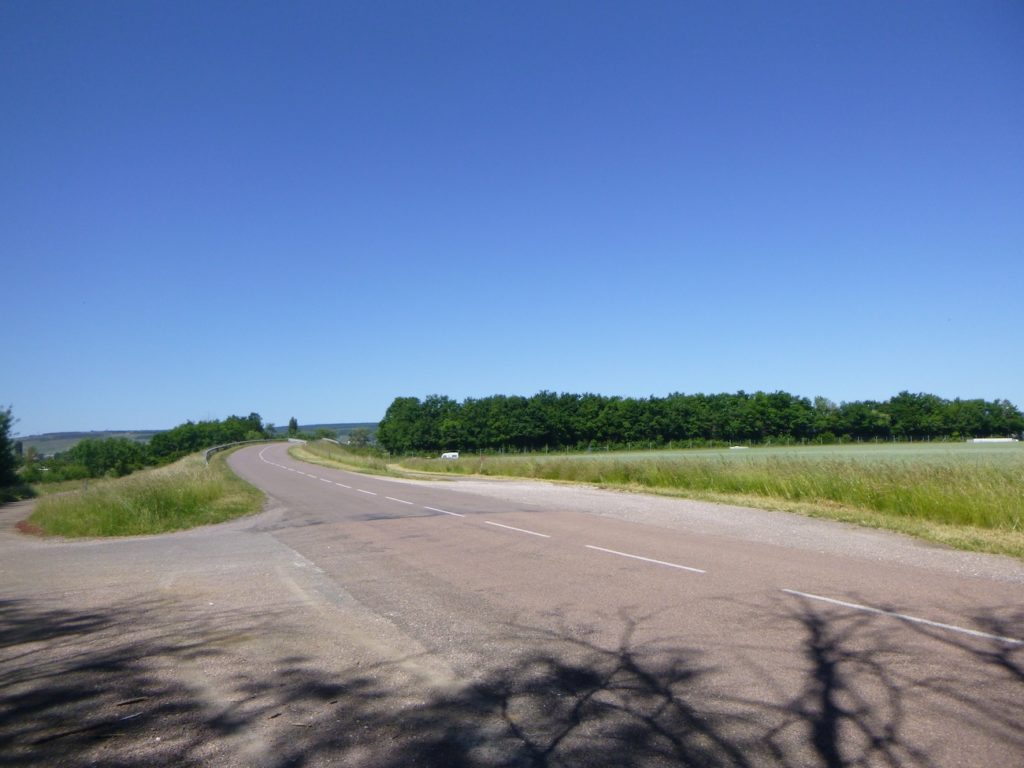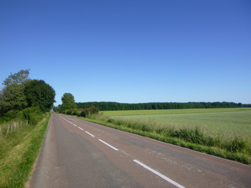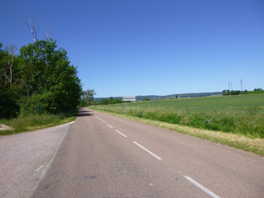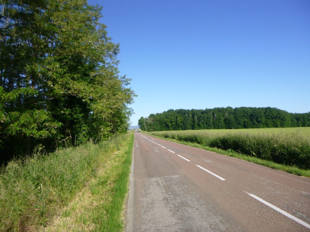 | Peu à peu, la terre cède la place au goudron. Le chemin rejoint la D116b, une route étroite et tranquille qui mène au village de Saint-Bernard. L’asphalte ramène un soupçon de civilisation, mais l’incertitude, elle, ne faiblit pas. |