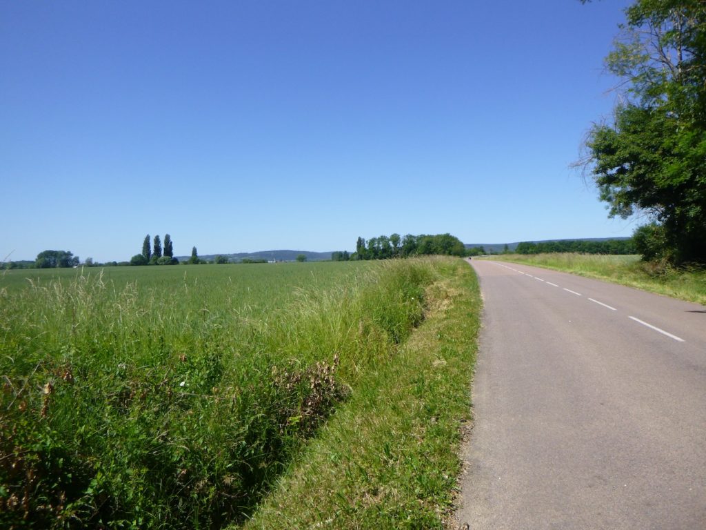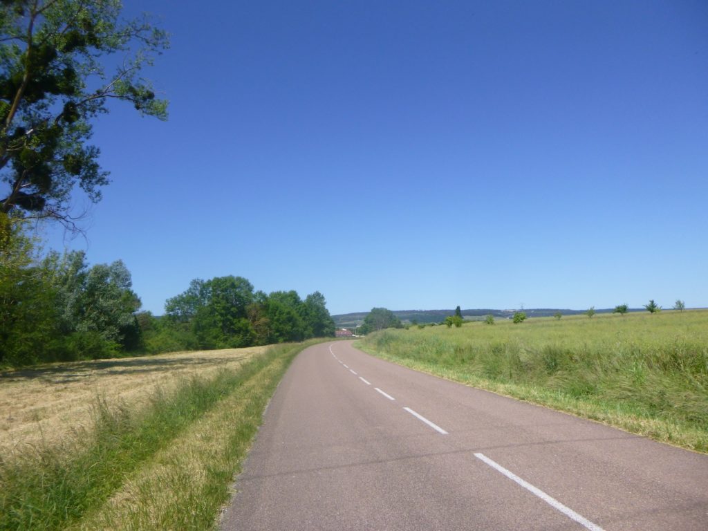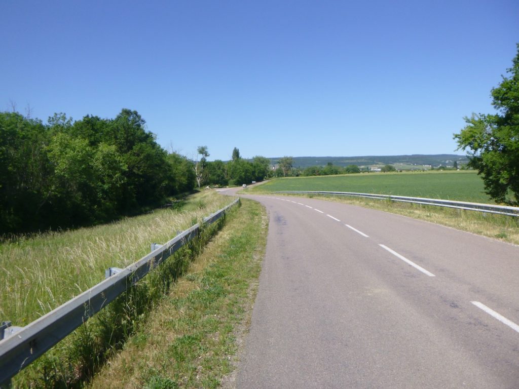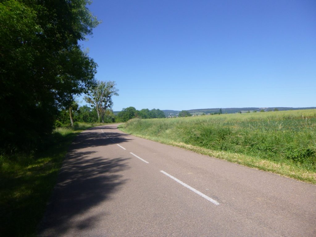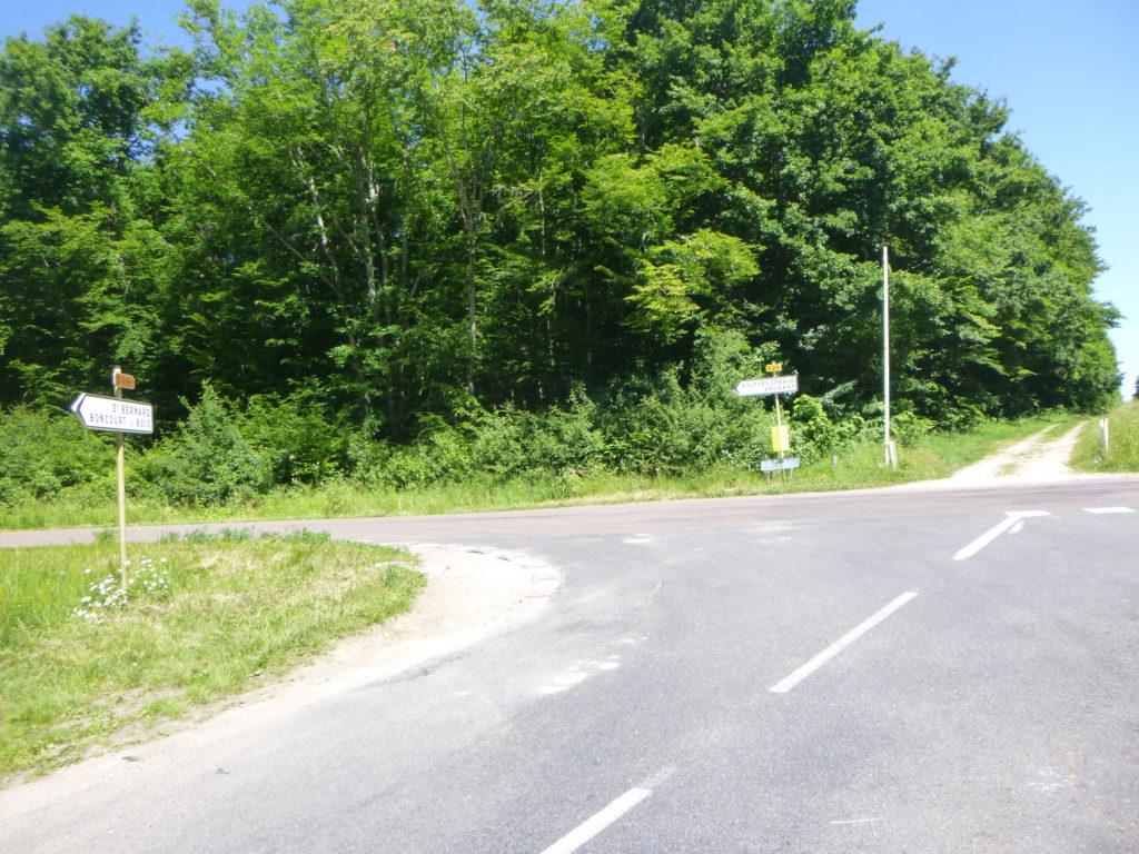 | Peu à peu, la terre cède la place au goudron. Le chemin rejoint la D116b, une route étroite et tranquille qui mène au village de Saint-Bernard. L’asphalte ramène un soupçon de civilisation, mais l’incertitude, elle, ne faiblit pas. |