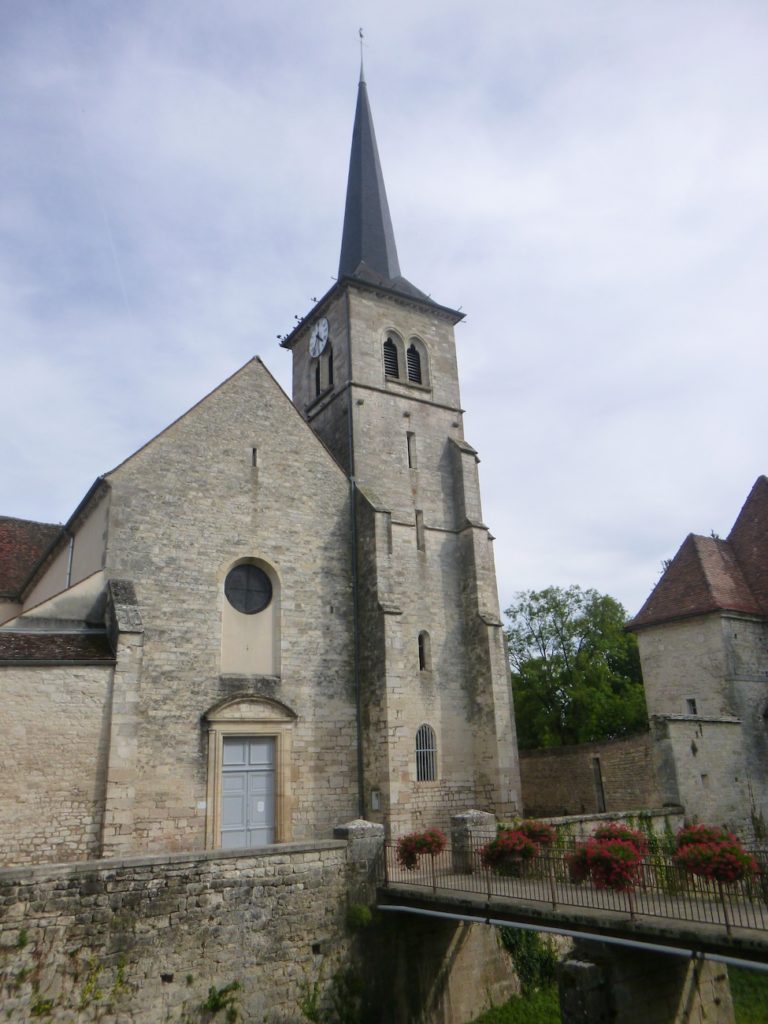 | Il faut franchir les fossés du château, enjambés par une passerelle, pour gagner l’église cistercienne Saint-Germain, édifiée au XIVe siècle puis modifiée au XVIe. Après la Révolution, elle devient paroissiale, accueillant désormais les habitants du village. Une porte dérobée, dissimulée dans la pierre, permettait jadis aux abbés de passer directement du château à l’église : un passage secret qui témoigne du lien intime entre pouvoir spirituel et pouvoir temporel. Au XVIIe siècle, les abbés de Cîteaux firent reconstruire, sur les vestiges anciens, une résidence prestigieuse, rétablissant douves et pont-levis des remparts. |