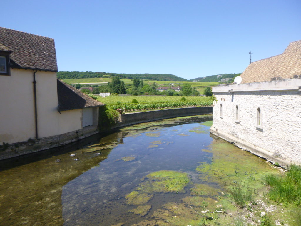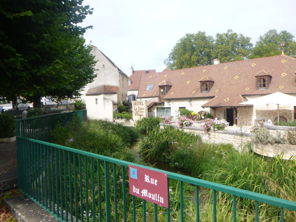 | La rue débouche bientôt au centre du village, près du splendide Clos de la Vouge. Cet hôtel, d’un raffinement discret, trempe littéralement ses pieds dans le ruisseau qui l’enserre de ses eaux fraîches et limpides. Le cadre semble presque irréel : entre l’eau vive et les vieilles pierres, le promeneur retrouve l’harmonie subtile d’un lieu qui sait marier élégance et authenticité. |
