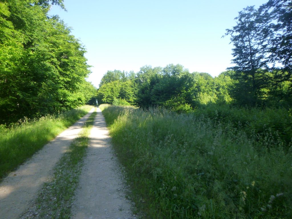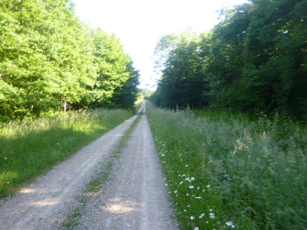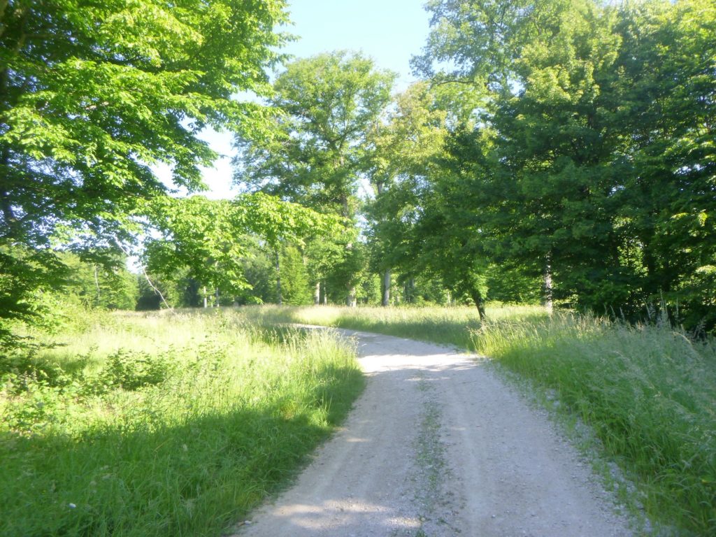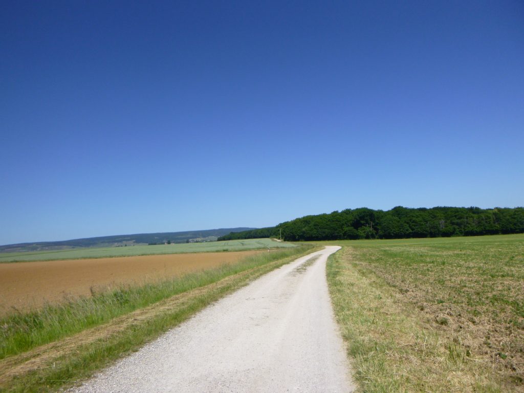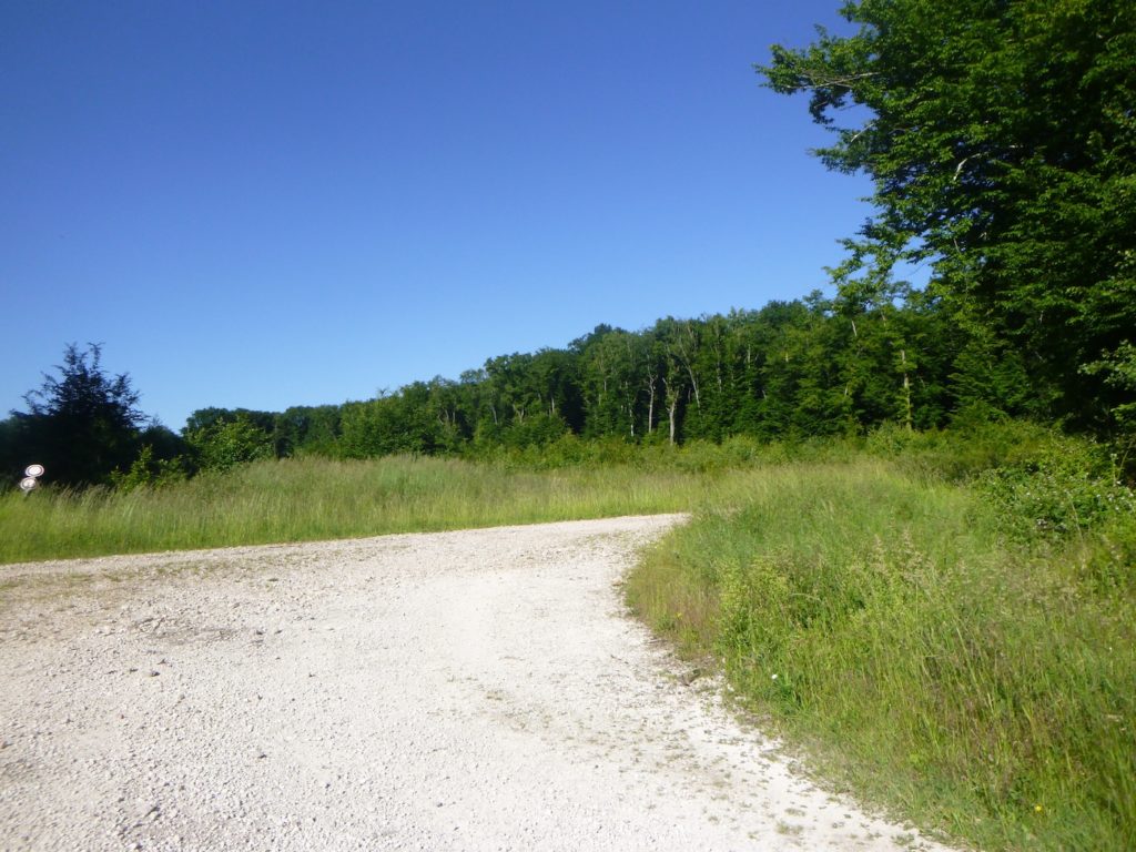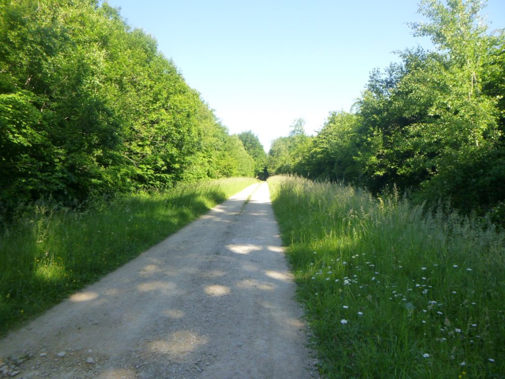 | Alors, le chemin longe le bois, patiemment, longuement, comme s’il lui faisait la cour. À perte de vue, les champs déroulent leur monotonie ondulante, et le chemin, imperturbable, trace son sillon entre nature et cultures. |