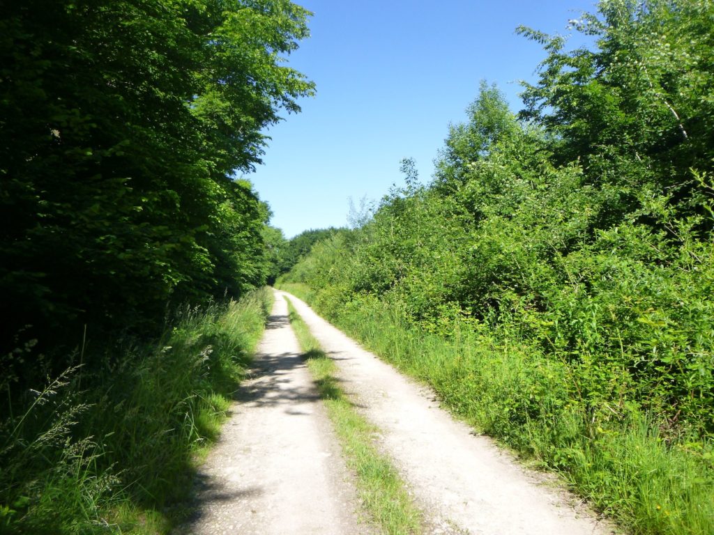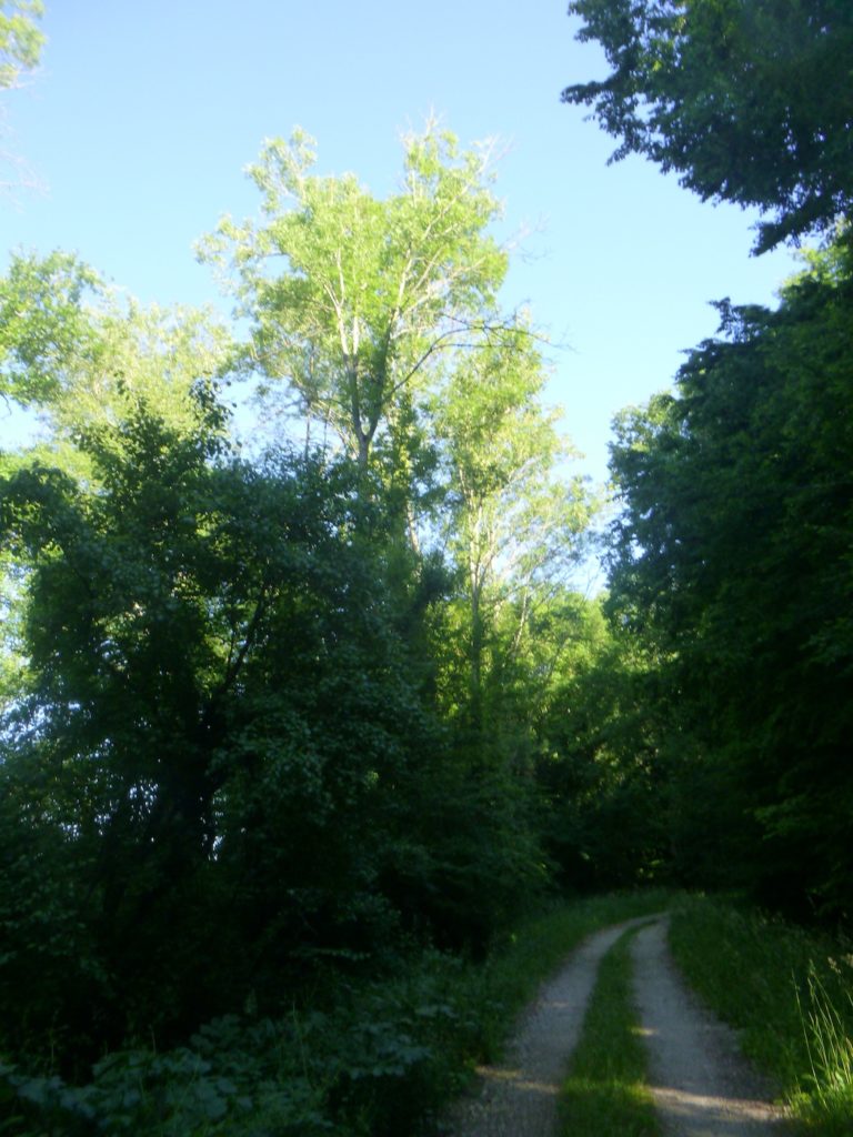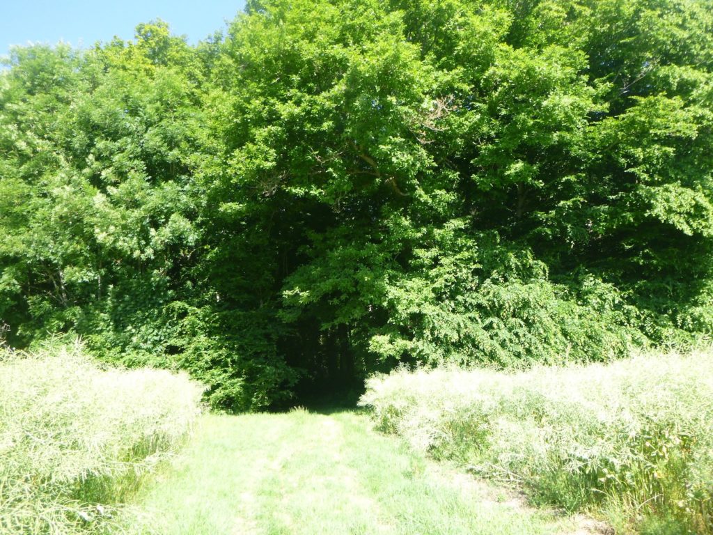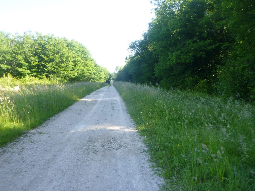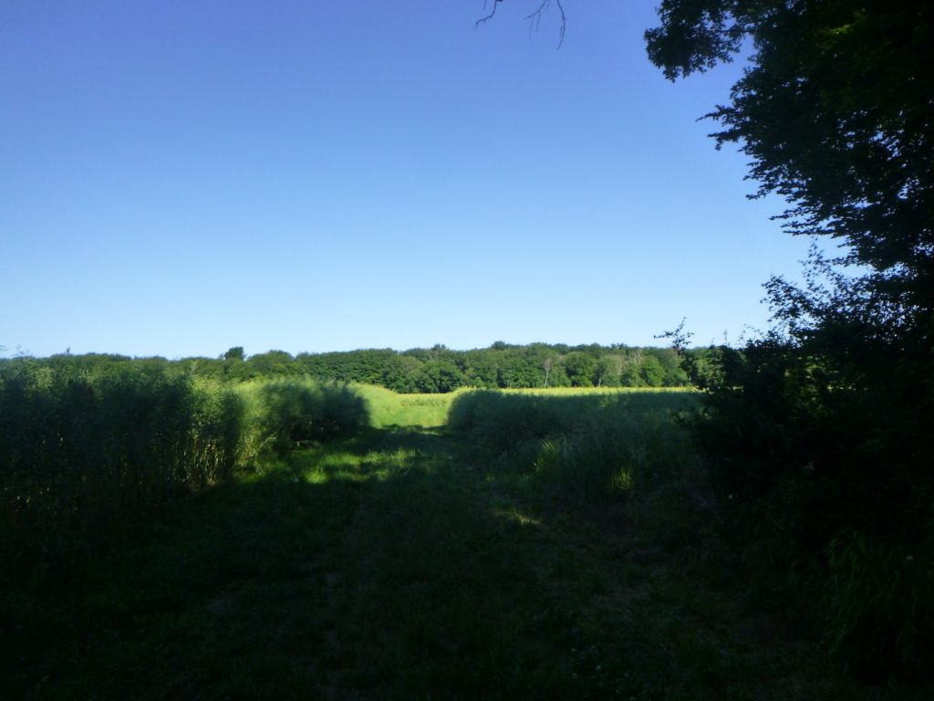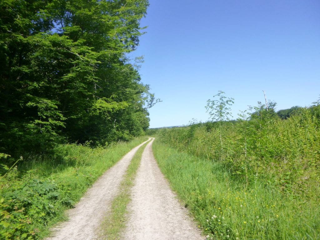 | Alors, le chemin longe le bois, patiemment, longuement, comme s’il lui faisait la cour. À perte de vue, les champs déroulent leur monotonie ondulante, et le chemin, imperturbable, trace son sillon entre nature et cultures. |