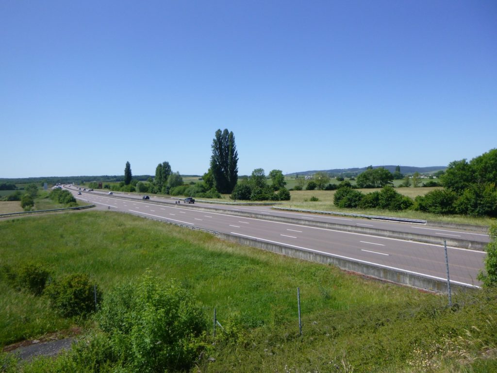 | Peu après, voici l’ombre écrasante de l’autoroute A31, ce fleuve d’acier et de bitume que l’on surnomme Autoroute de Lorraine-Bourgogne. Elle relie le Luxembourg à Beaune, charriant inlassablement le flux des poids lourds venus d’Allemagne, de Belgique et des Pays-Bas, sillonnant l’Europe comme des fourmis obstinées. Elle traverse Metz, Nancy, Dijon : autant de haltes anonymes sur ce grand chemin moderne. |