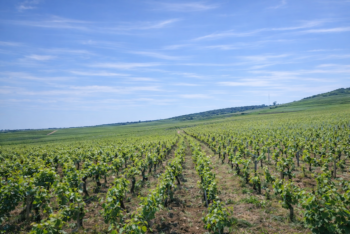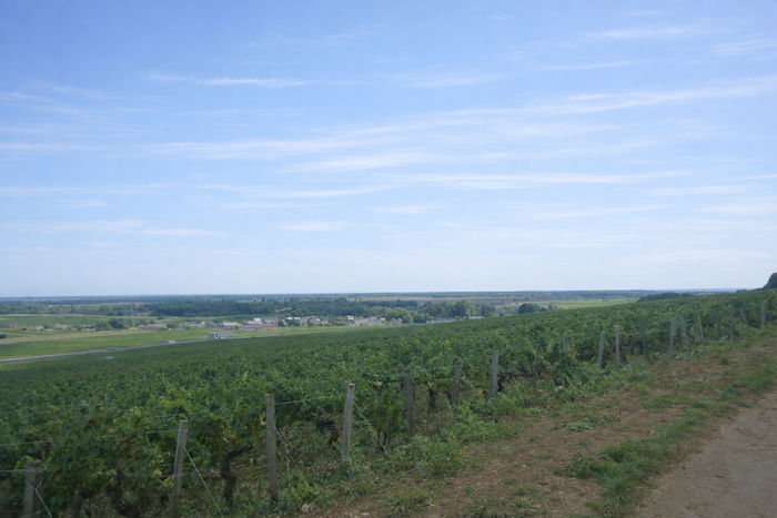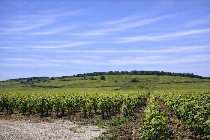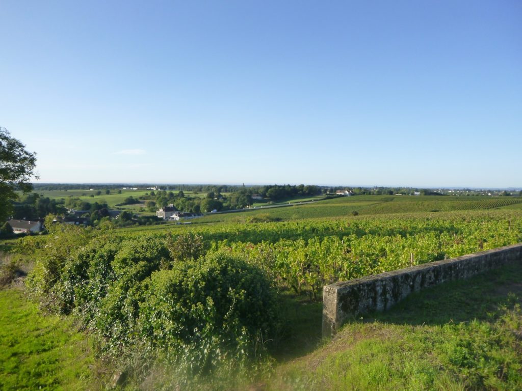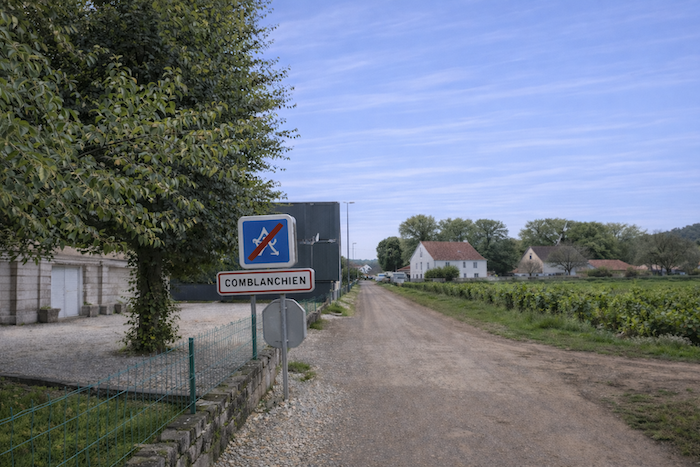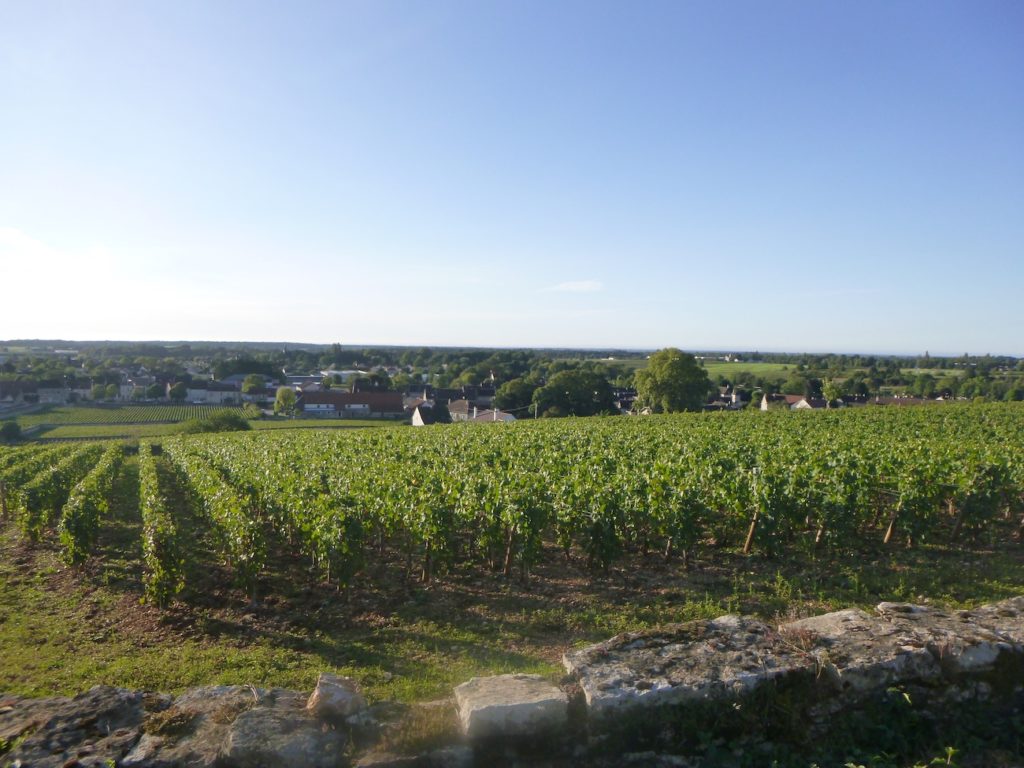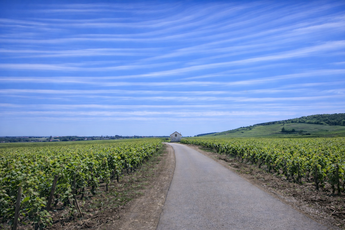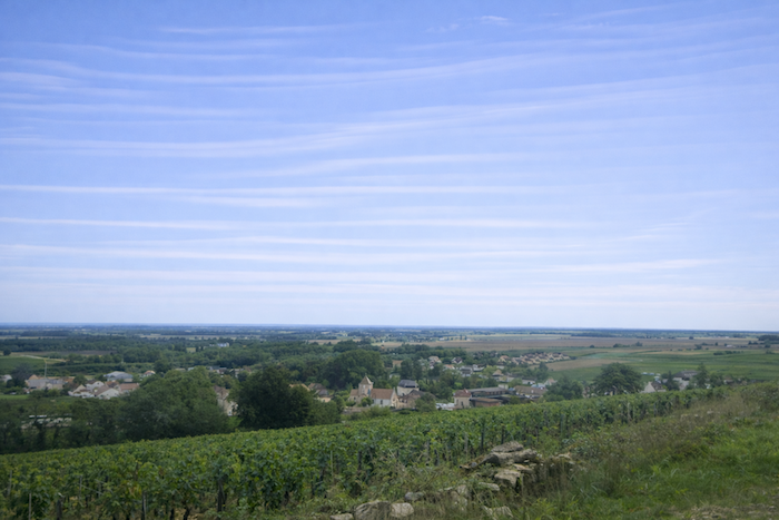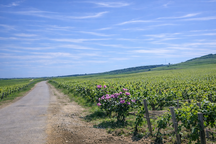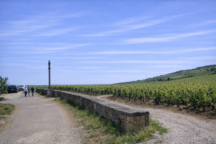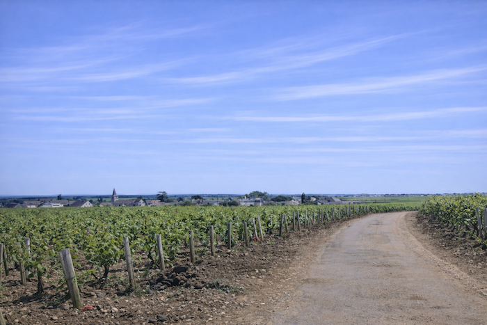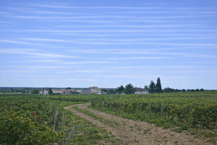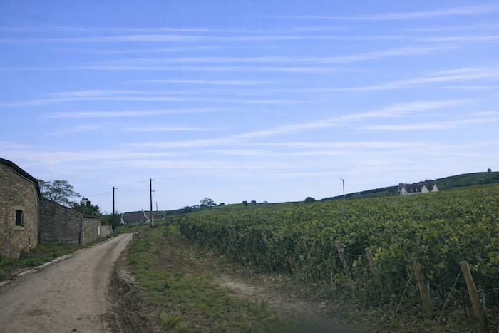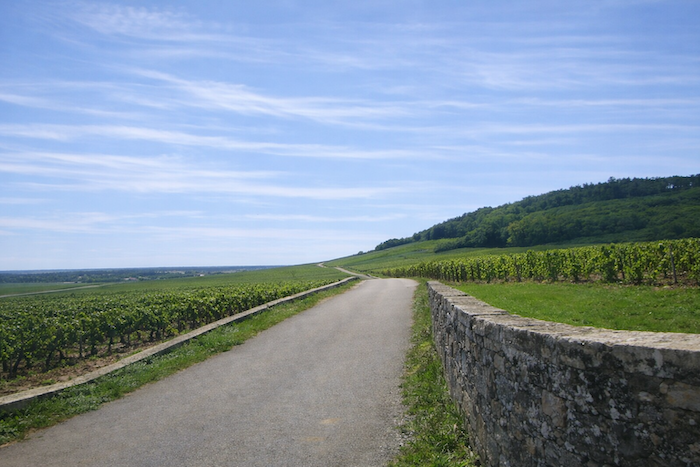 The road then softens and continues to rise gently above the village of Ladoix, still surrounded by vines spreading out like a golden checkerboard.