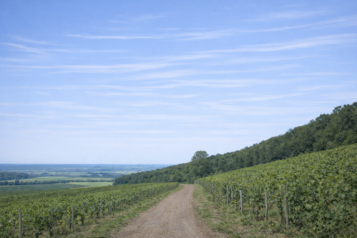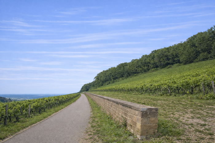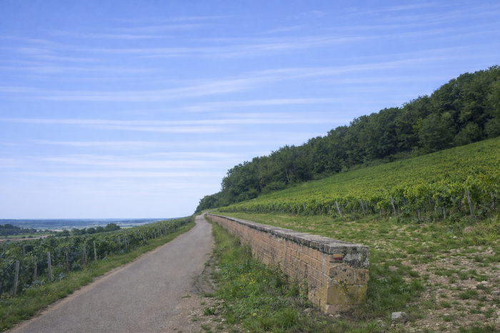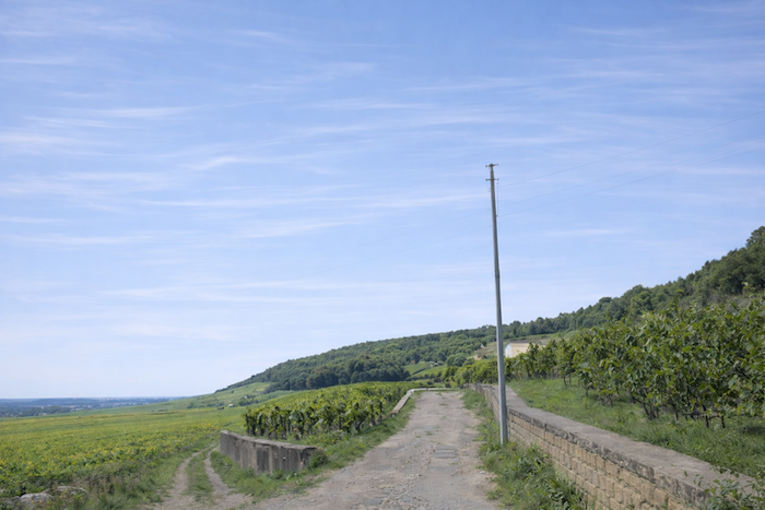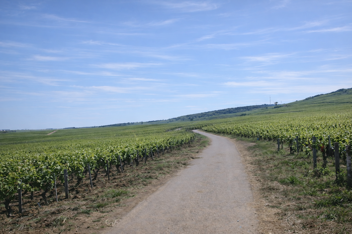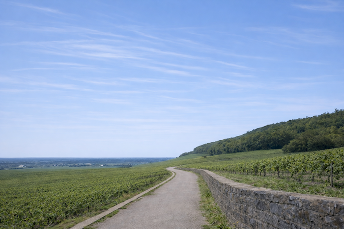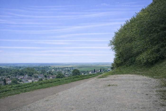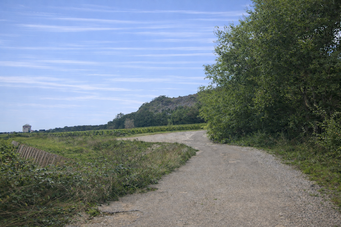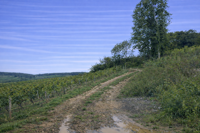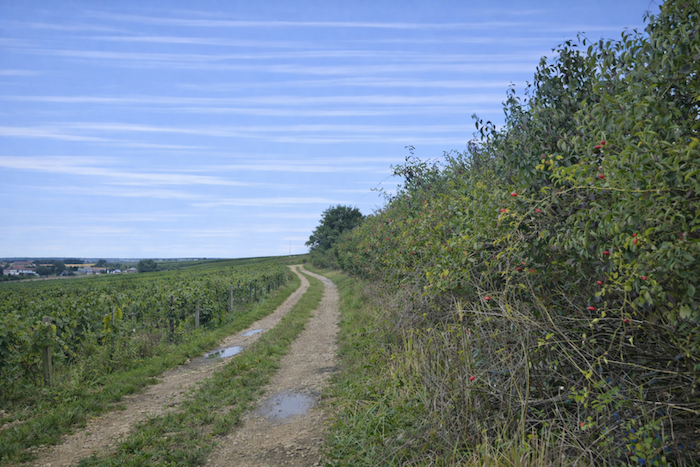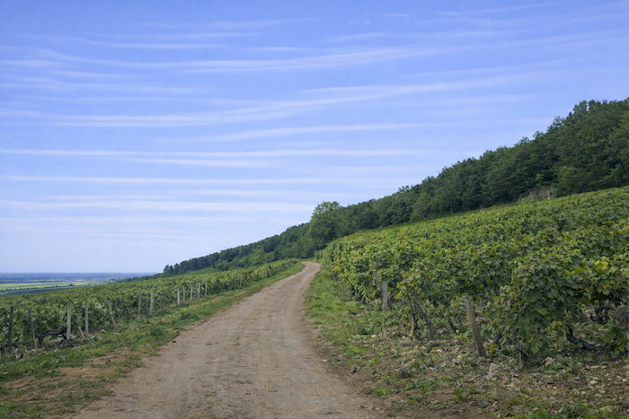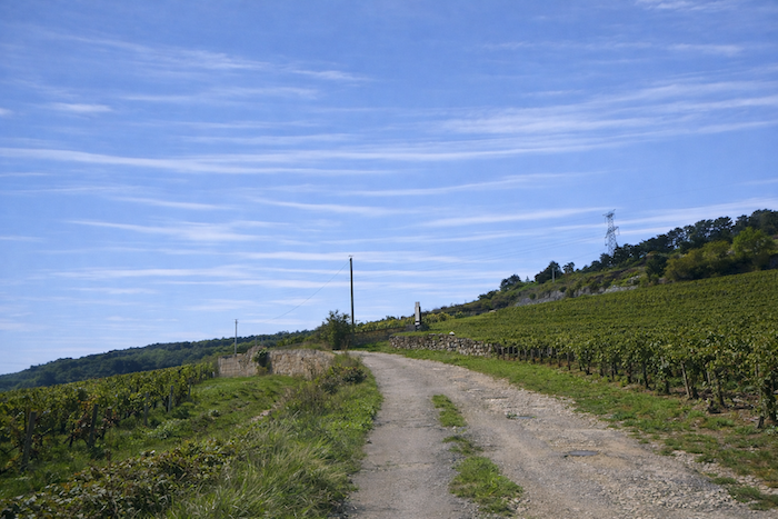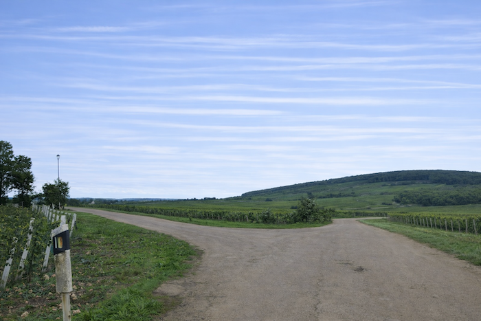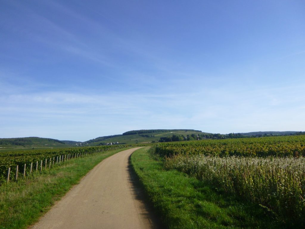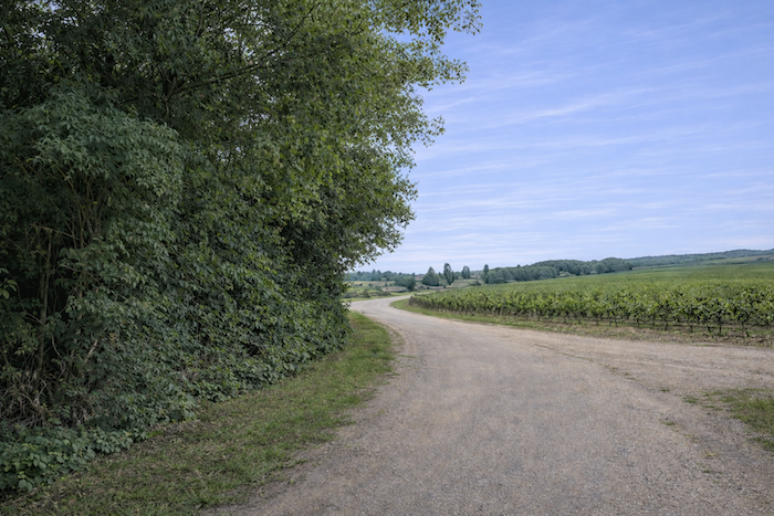 A wide dirt path then opens before you, running toward the hill of Corton
