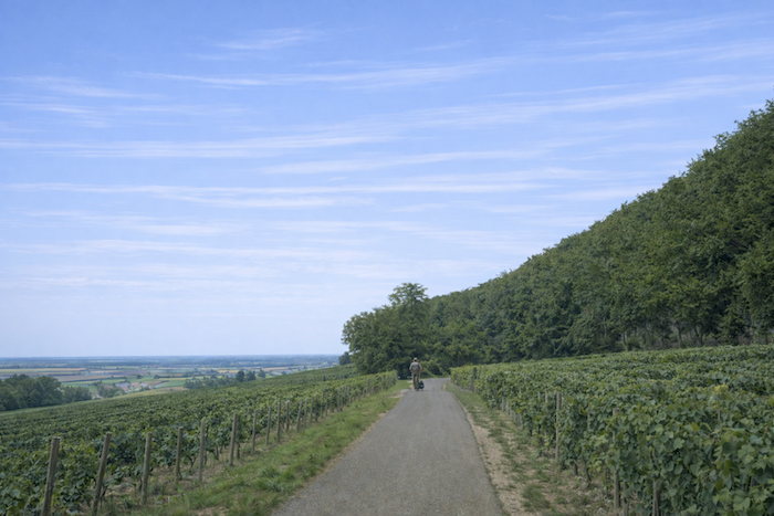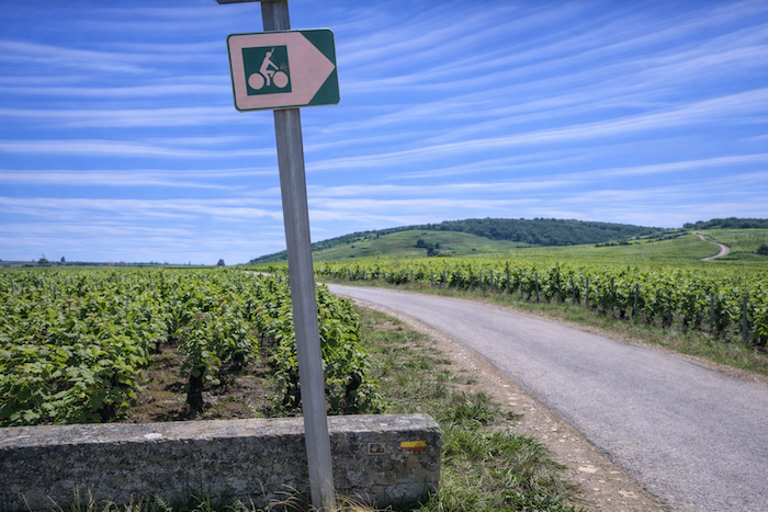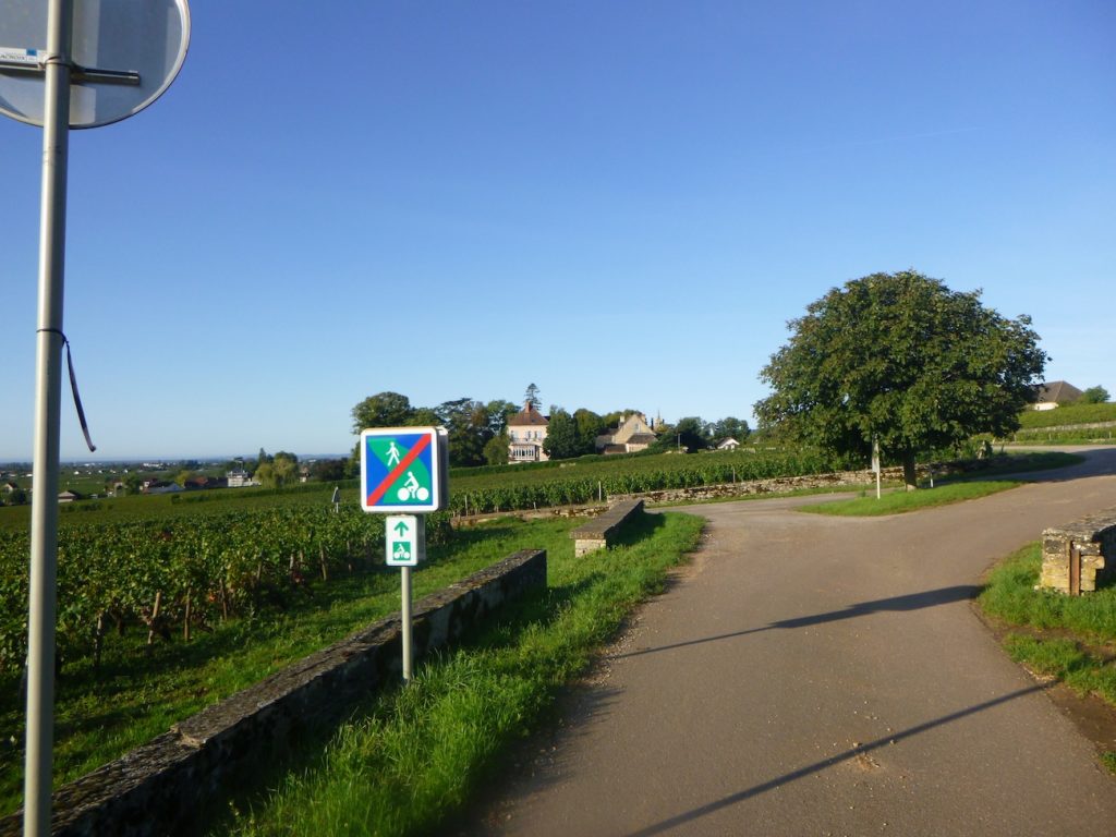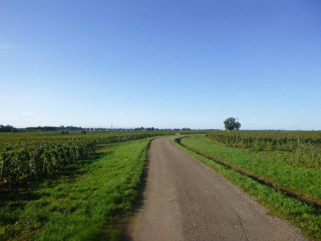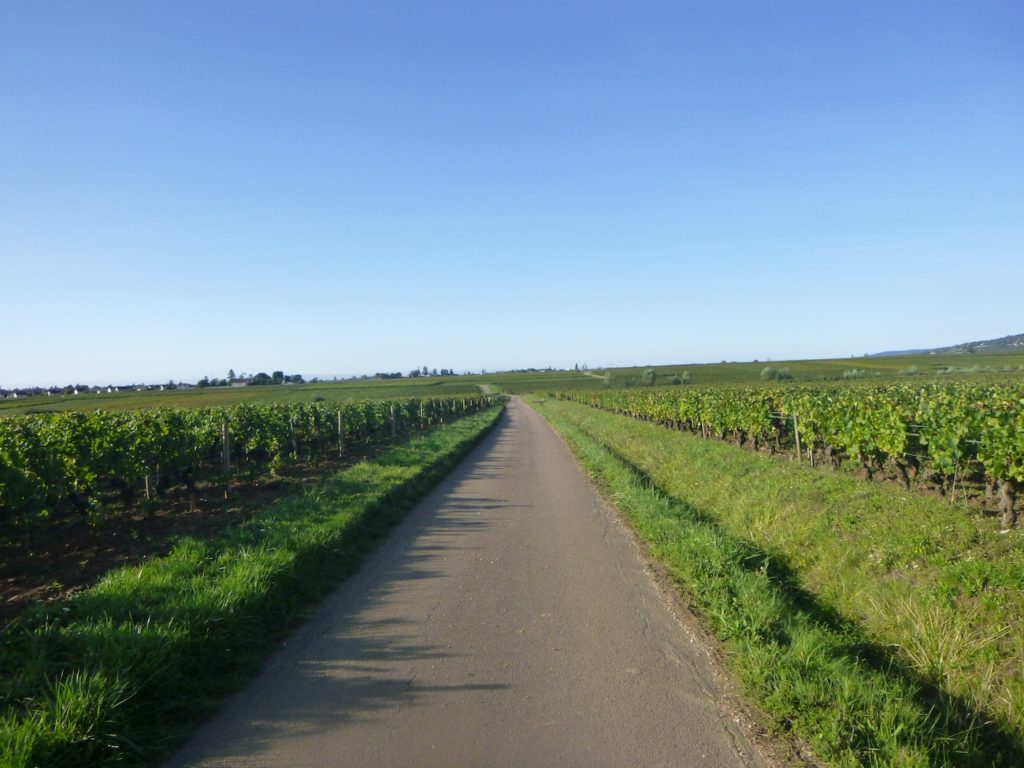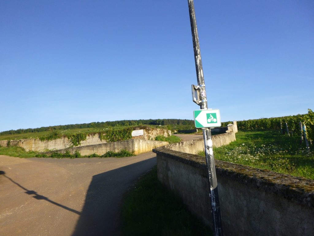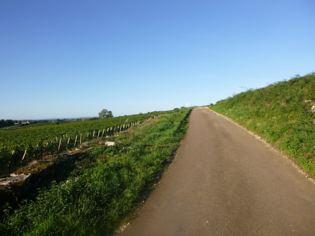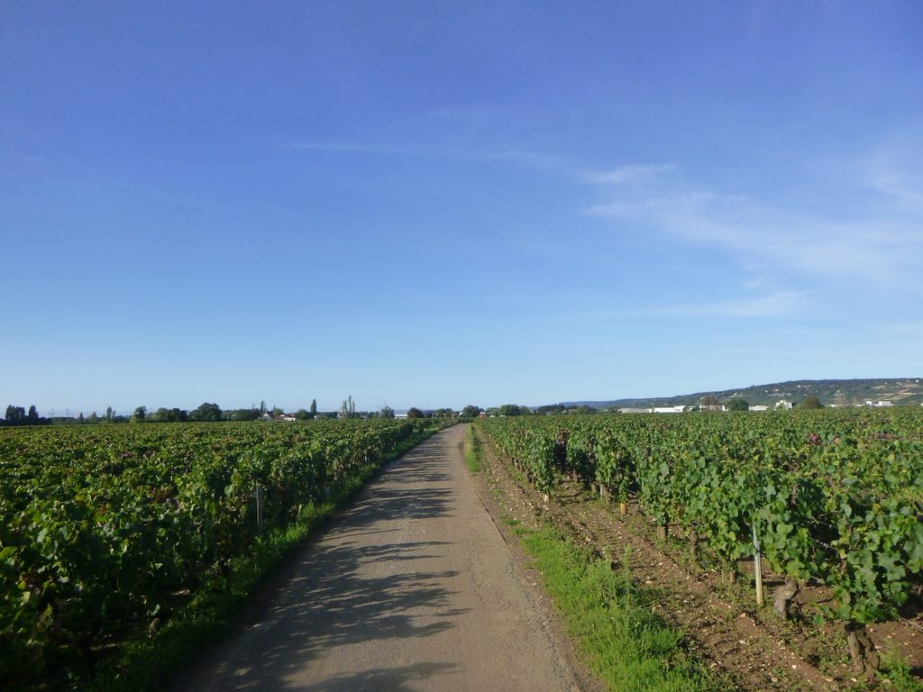 Soon, you join a discreet and peaceful cycle path that runs through the vineyard toward Aloxe-Corton.
