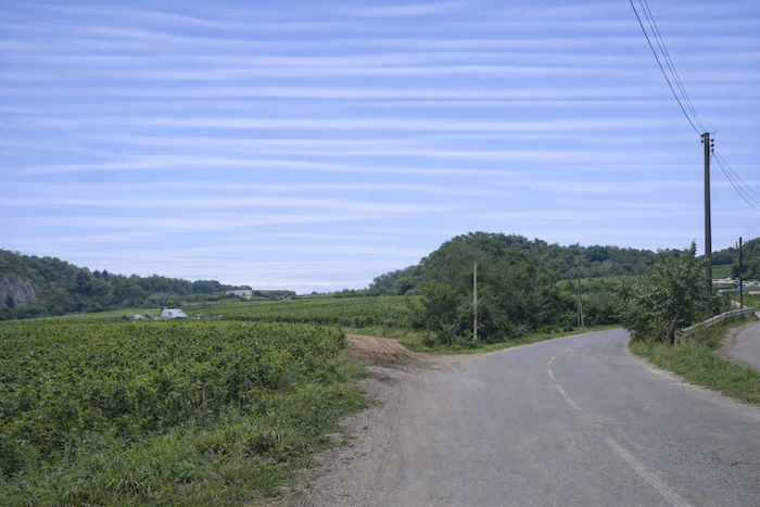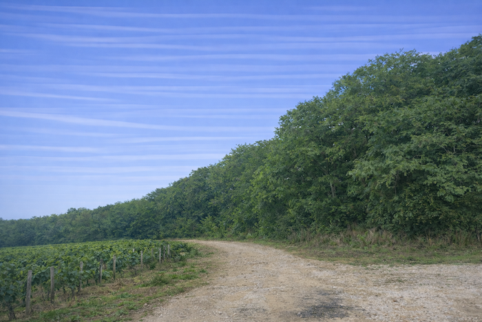 The road then undulates through the vineyard, gliding beneath the edge of the woodland. It stretches like a gentle caress along the hillside, half in shade, half in light.
