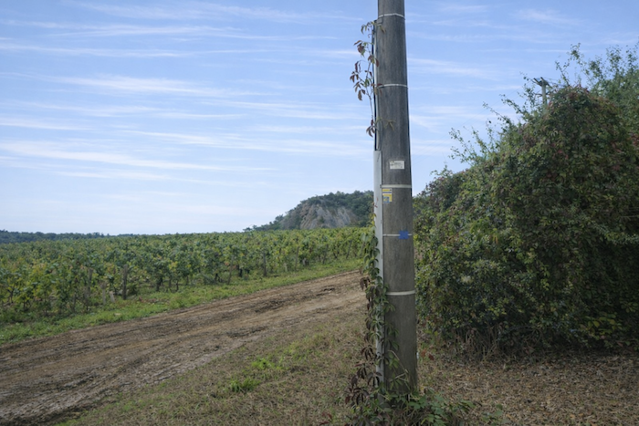 It is then an asphalt road, slightly uneven, that leads you higher onto the rise, running alongside the rows of vines.