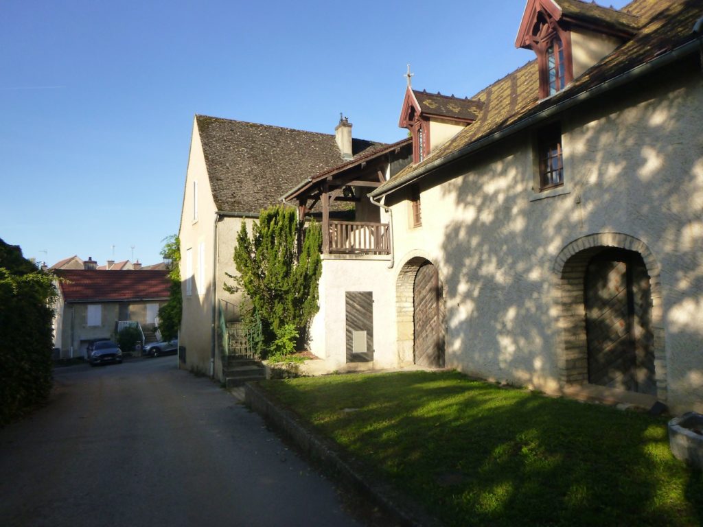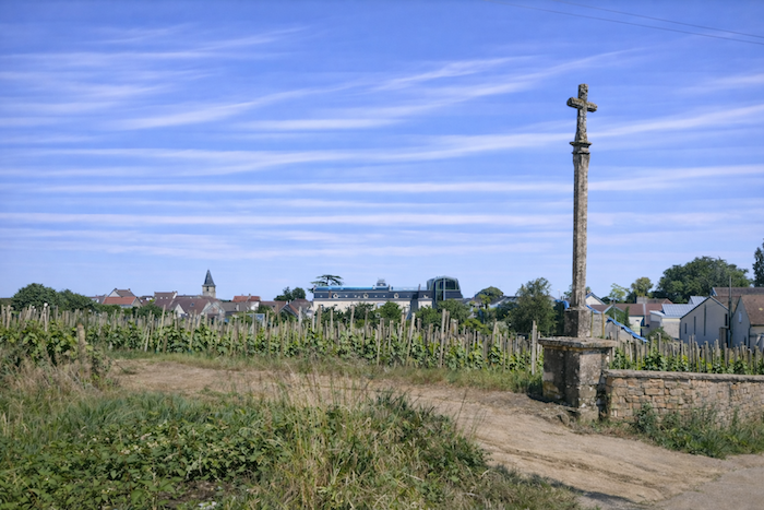 The village lies close at hand, nestled at the foot of the hill, appearing as a welcoming cocoon, a gentle halt at the heart of Burgundy.