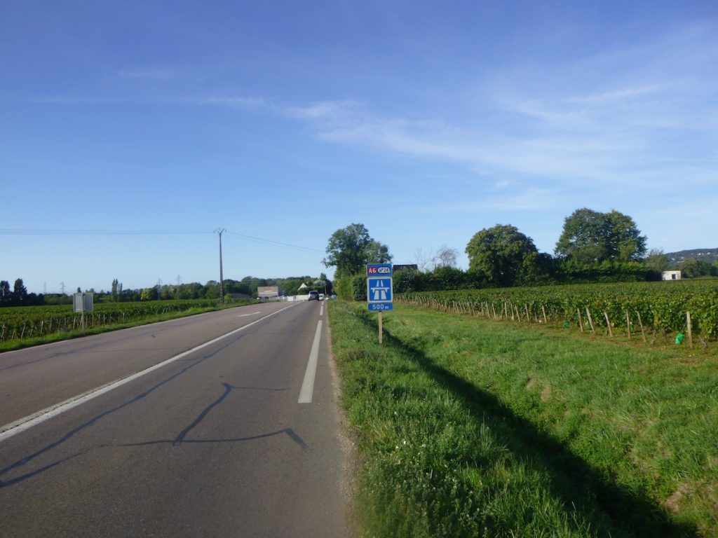The roadway then heads toward Beaune and crosses the A6 motorway, the busy artery linking Paris to the south of France. The contrast is abrupt. After days spent among vineyards, modernity surrounds you with its noise and restless rhythm.