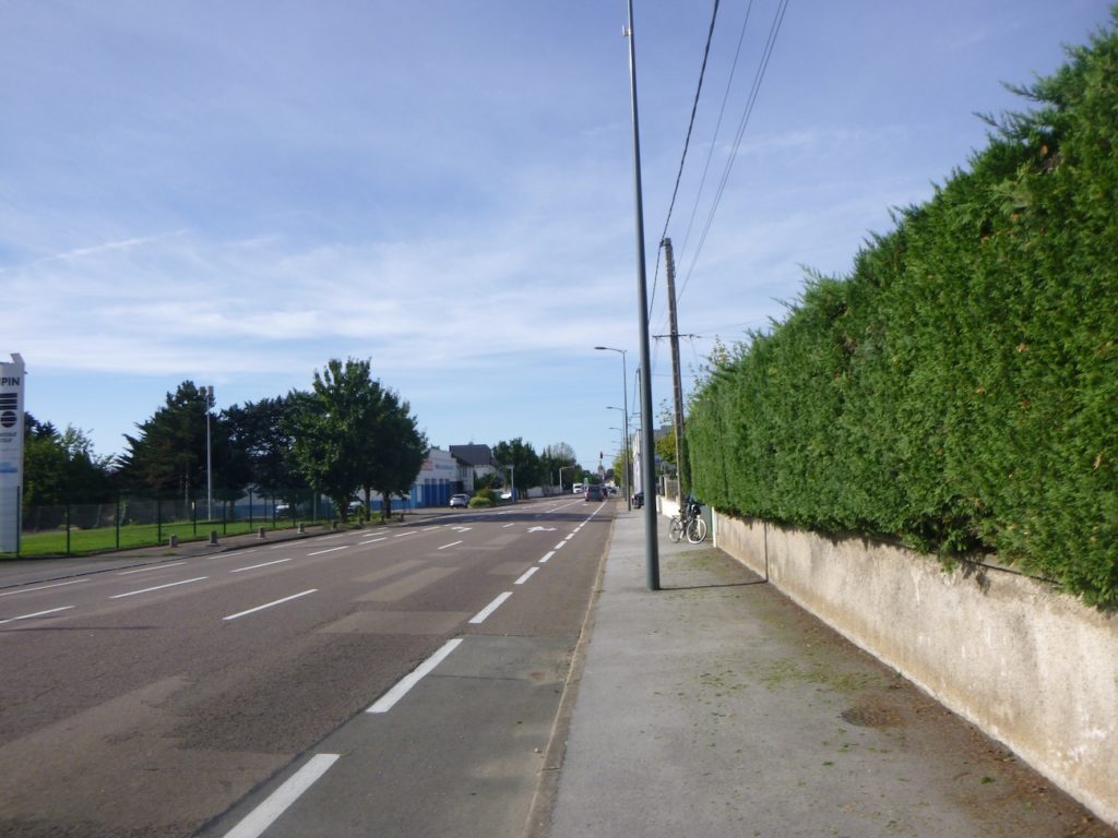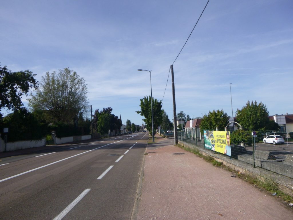 A long walk then begins, sometimes wearisome, along the pavement of Rue du Faubourg St Nicolas. The gaze drifts across aligned façades and successive shop signs, and the step becomes almost mechanical, paced by urban monotony.