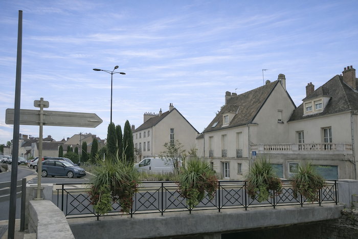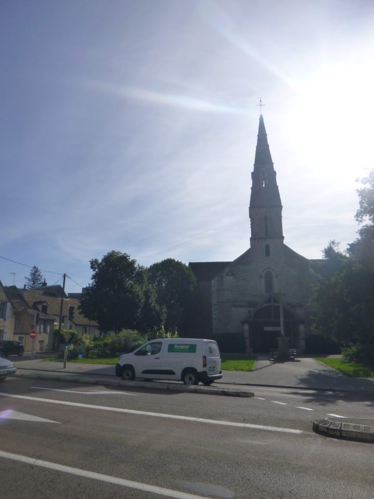 The route does not enter the town center. Should you choose to do so, you will return here to resume the route, for the center itself is well worth a visit, even at the cost of a slight detour. Like a promise, it waits behind its narrow streets, ready to reveal its secrets of stone and light. If you head toward the center, continue along Rue Félix Tisserand, then Rue Port Fermerot. You will pass Saint-Denis Church, a noble and restrained silhouette raising its bell tower like a finger pointing toward the sky. You will then reach the Grande Rue and its shops, a pulsating artery where everyday life intertwines with old-world charm. Shop windows sparkle like fragments of life, and passers-by weave the living murmur of the town.