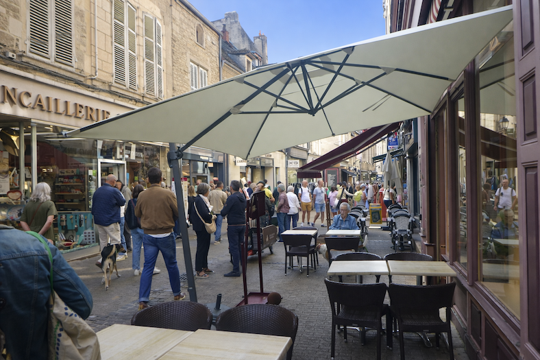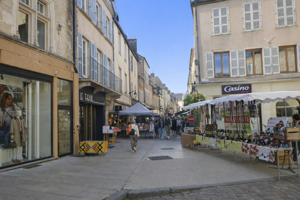 At the end of this bustling street stretches Place de la Halle, the true beating heart of Beaune. It is here that residents and visitors converge, as if the entire city had agreed to meet in this vibrant space. Around it, old façades seem to preserve the memory of centuries of fairs and exchanges that shaped the city’s commercial soul.
