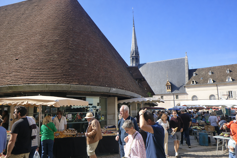 The Beaune market hall, with its vast timber frame that both impresses and reassures, is far more than a covered market. It is a place of memory and continuity. Built in the nineteenth century to replace medieval halls, it perpetuates a tradition dating back to the Middle Ages, when grain, livestock, wine and produce from the surrounding countryside were sold here. Even today, it pulses with the rhythm of food markets. Yet the hall is not only a commercial space. It also hosts wine fairs, gourmet exhibitions and cultural events, transforming its immense nave into an open stage of flavors and cultures. And it is here, on the third Sunday of every November, that the event takes place which has carried Beaune’s name across the world, the famous Hospices wine auction. Since 1859, this prestigious auction has drawn collectors, restaurateurs, wine merchants and enthusiasts from every corner of the globe. The barrels, produced from the sixty hectares of Hospices vineyards rich in premier crus and grand crus, are fiercely contested in an atmosphere that is at once solemn and festive. Beneath the beams of this hall, bids echo like a celebration of vine and time, where tradition, charity and viticultural excellence unite in a single movement.