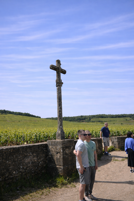 The small Route des Grands Crus then runs above the village of Vosne-Romanée, where fascinated visitors stop to be photographed beneath the stone cross, as if to claim, if only in image, these inaccessible vineyards. The stones seem to absorb both gaze and time, granting visitors the fleeting illusion of belonging, for a moment, to this sacred land.