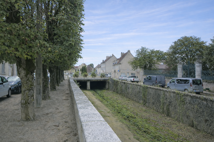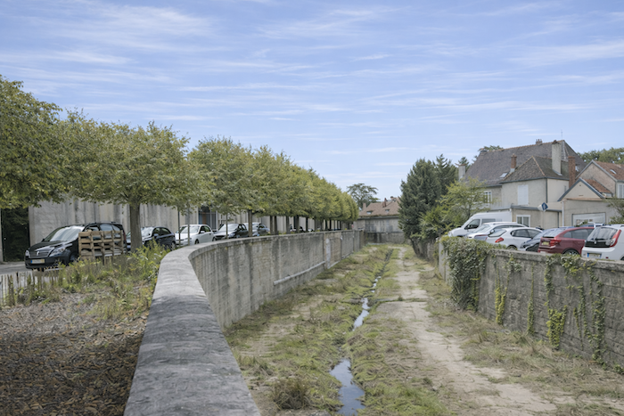 Back at the fork by the Meuzin stream, the route follows a tree-lined path, these trees acting as quiet guardians along the watercourse, like a watery scar in the landscape. This is Quai Fleury, once animated by a washhouse where conversations and daily gestures of washerwomen filled the air. Today, silence has settled in, yet the quay retains the memory of flowing water and vanished voices.