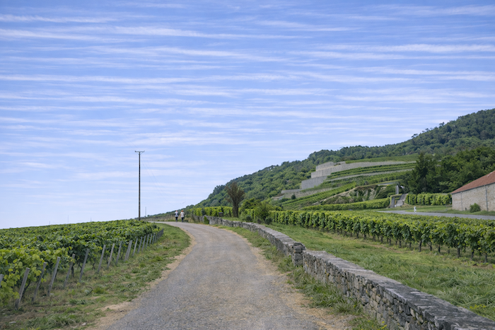 Chemin des Carrières must be earned. It is a climb, the first significant effort of this stage, winding its way through the vineyard.