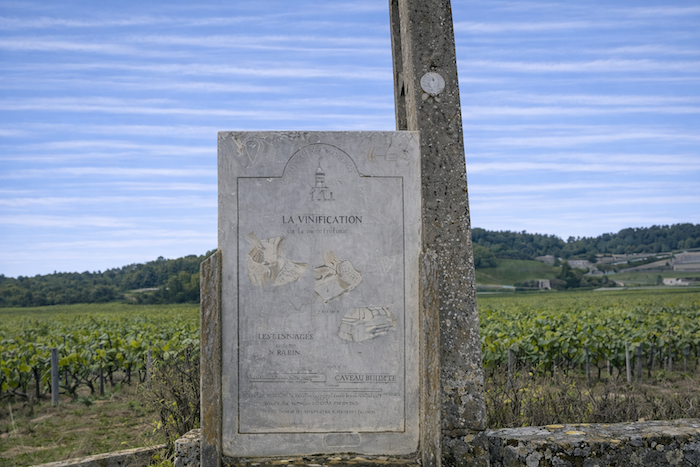 Here and there, old signs worn by weather and time bear witness to vineyard work and the prestigious names of the parcels. They stand like relics softened by age, still capable of whispering the history of these lands to passing travelers.