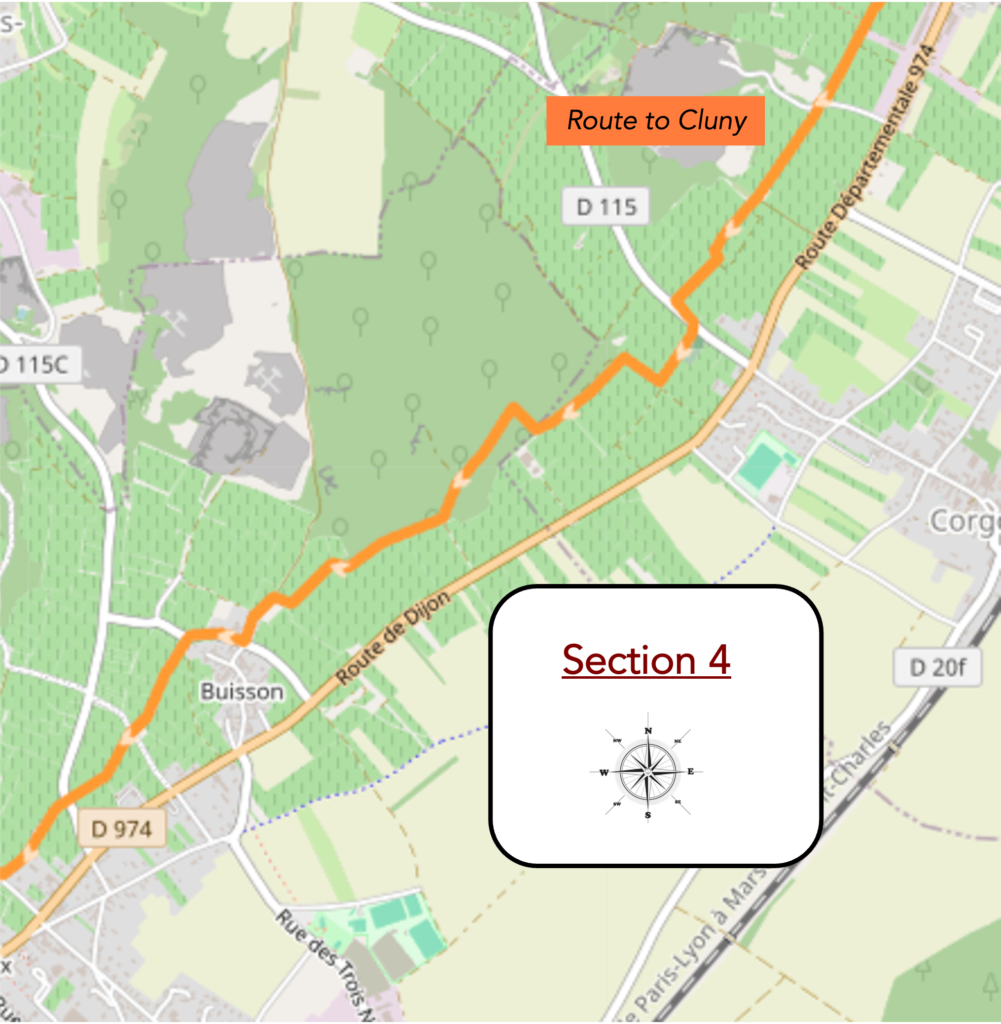 As you leave the picnic area, a trap awaits. Ladoix-Serrigny lies before you, and naively you convince yourself that the route leads there. Of course, no scallop appears to confirm this. What do the Friends of Compostela advise? In Rue de la Huchotte, turn right, then left, and reach the D115c. Clear? Not at all. Absurd, in fact, and entirely wrong. You are sent first right, then left, without any sense of where this elusive D115c might be, invisible in the landscape. If you were to give in to the pull of the village and head toward Ladoix, you would lose your way and need considerable effort to find the route again. No. The path here heads in the opposite direction, to the right. We are here to save you from that mistake.