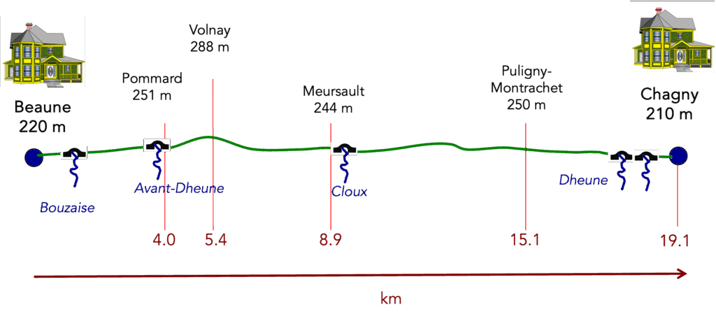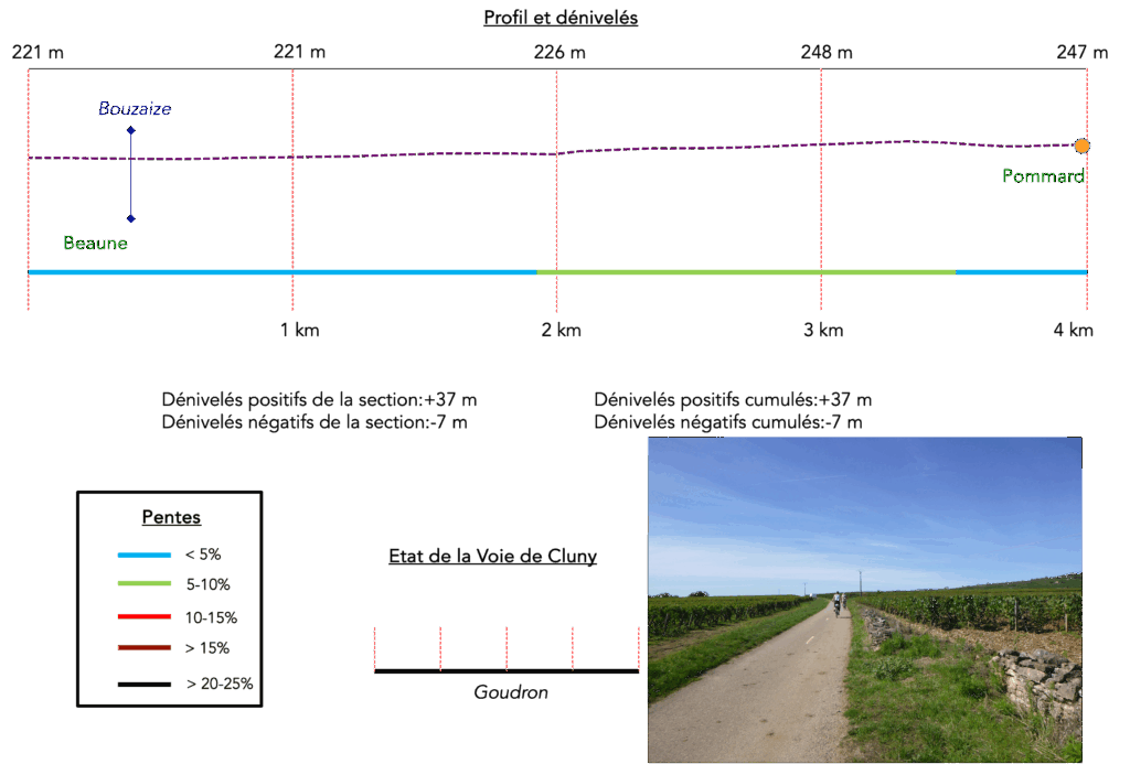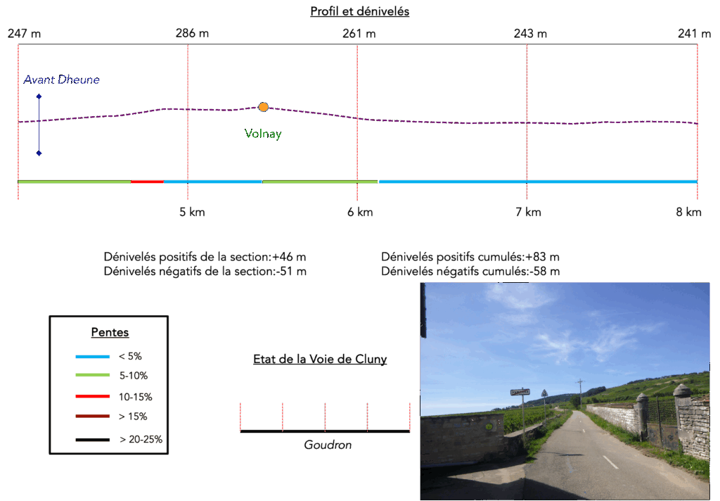 Aperçu général des difficultés du parcours : parcours un peu plus pentu pour gagner Volnay.