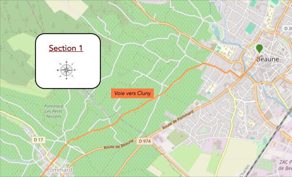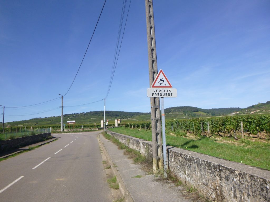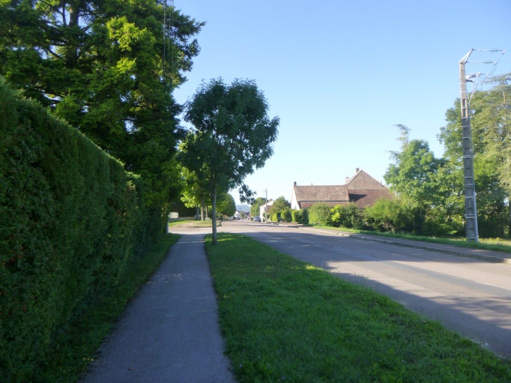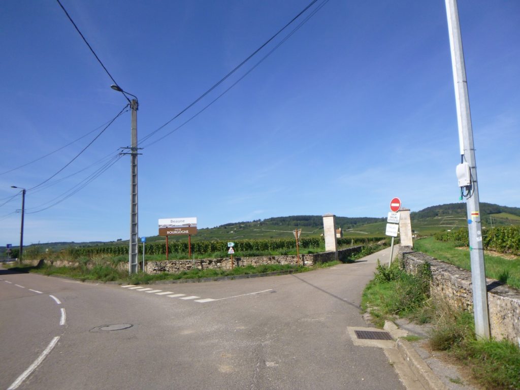 | À la sortie de cette partie plus ancienne et habitée, le parcours emprunte la Route de Beaune. |