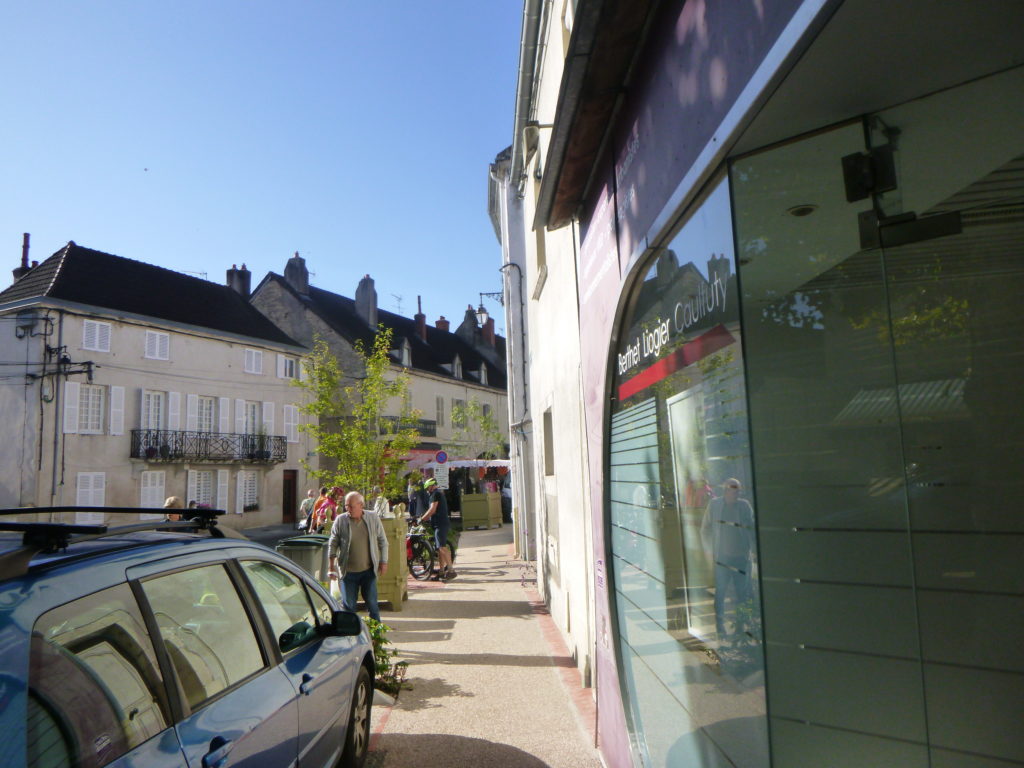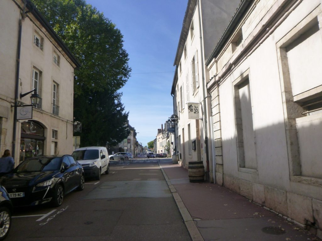 | Bientôt, il se faufile par la Place Fleury, où les commerces alignent leurs devantures et exhalent une animation citadine. Puis, en s’avançant dans la rue Maufoux, on sent peu à peu l’agitation s’effacer : les bruits s’assourdissent, les façades s’espacent, et le marcheur s’extrait doucement du cœur palpitant de la ville, comme si Beaune, à regret, desserrait son étreinte. |