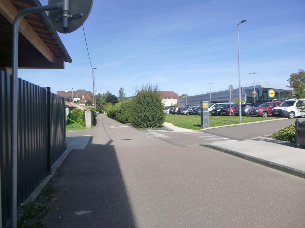 | Cette ruelle étroite, presque confidentielle, longe l’ombre d’un grand centre commercial et les étendues d’un parking. Le contraste est saisissant : après l’élégance des vieilles rues, le pas du marcheur résonne soudain dans la modernité triviale du quotidien. |