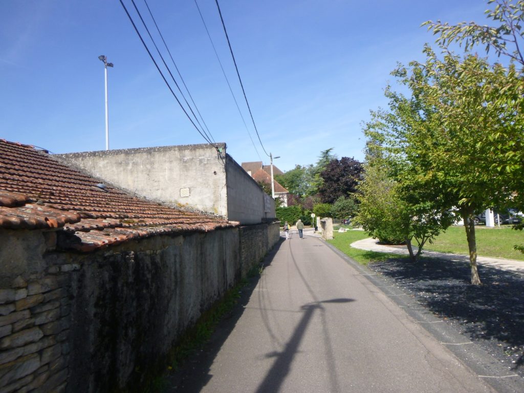 | Corpeau est comme une vaste banlieue de Chagny. Le parcours se prolonge longuement dans des allées ombragées, bordées d’arbres bienveillants, longeant de petites villas paisibles aux jardins soignés. Le pas du marcheur se fait plus régulier, presque urbain, mais la verdure conserve encore un peu de l’âme des coteaux. |