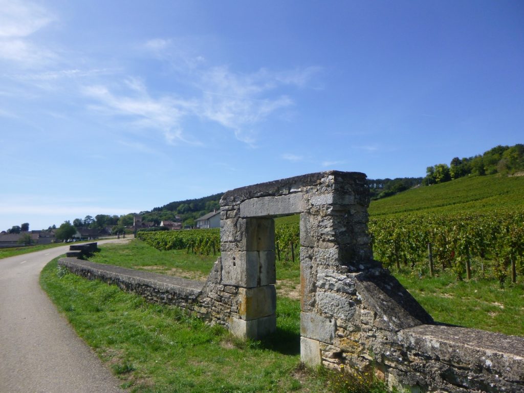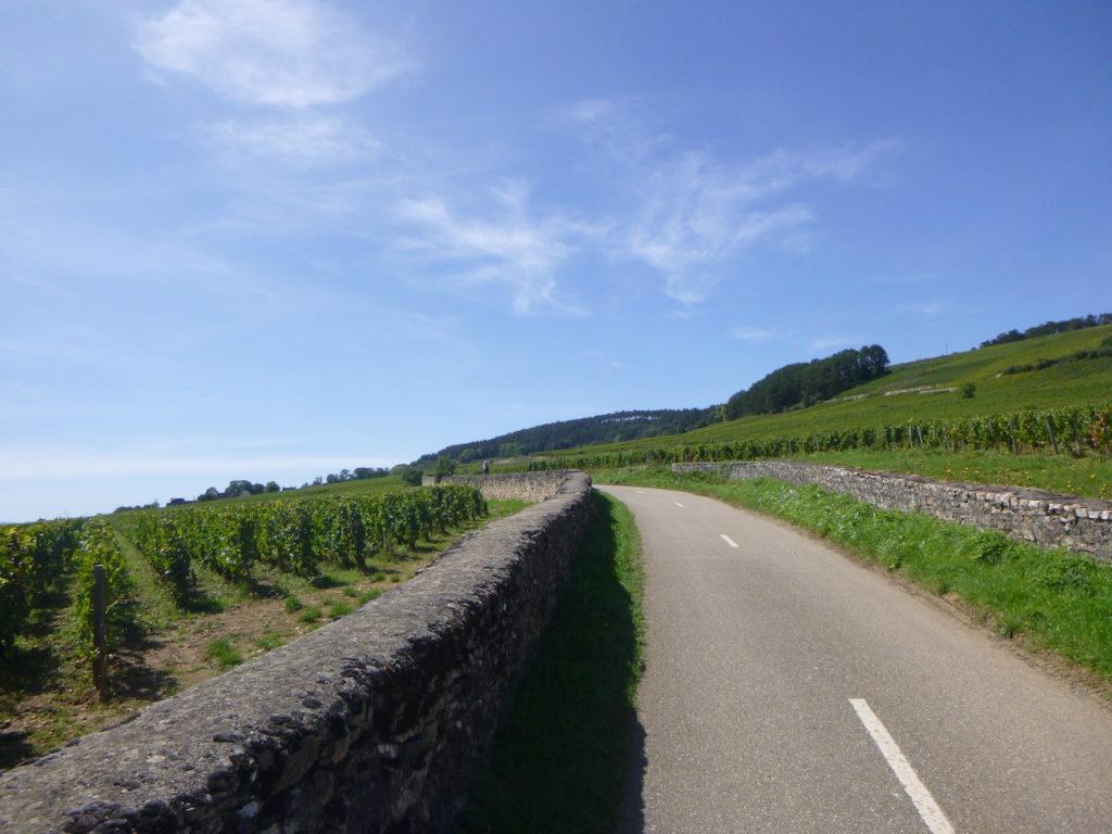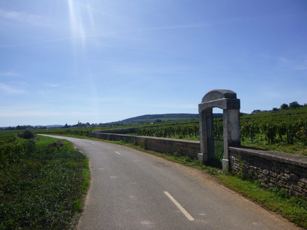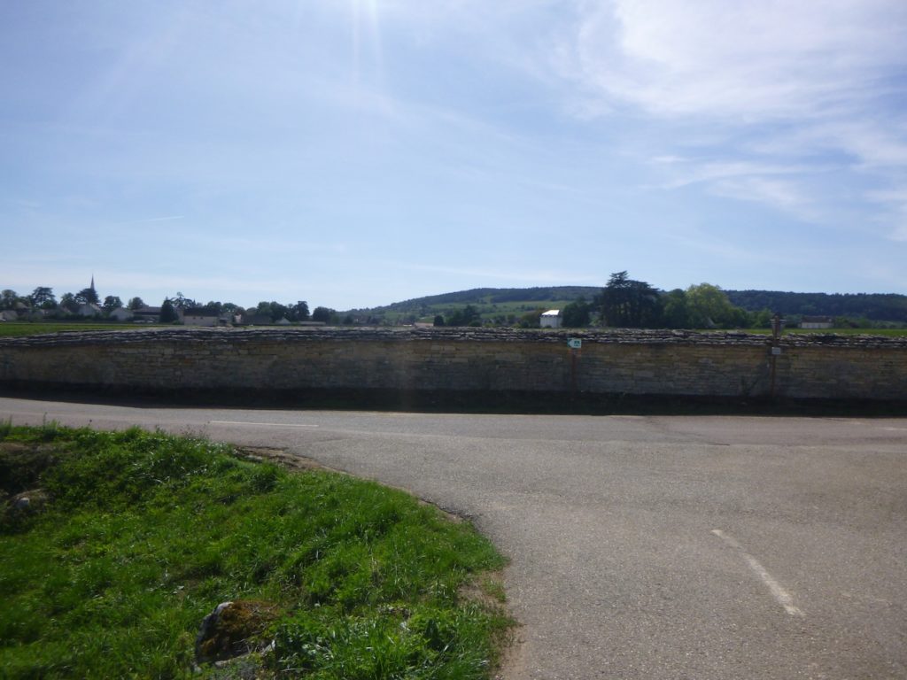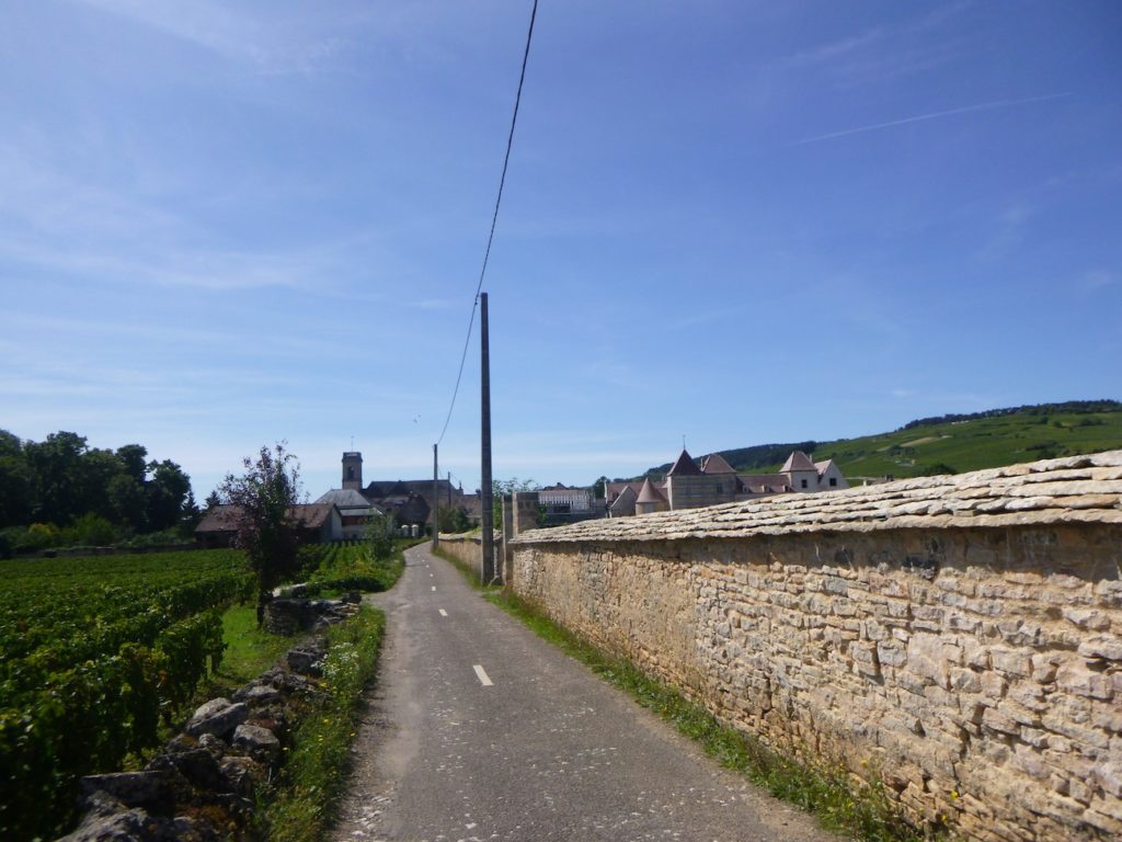 | La route se met alors à serpenter en quelques lacets gracieux, longeant un imposant mur de pierre. Derrière ses murs, on devine l’ombre d’un domaine prestigieux, peut-être l’un de ces sanctuaires où s’élaborent des crus qui font la gloire de la Bourgogne. |