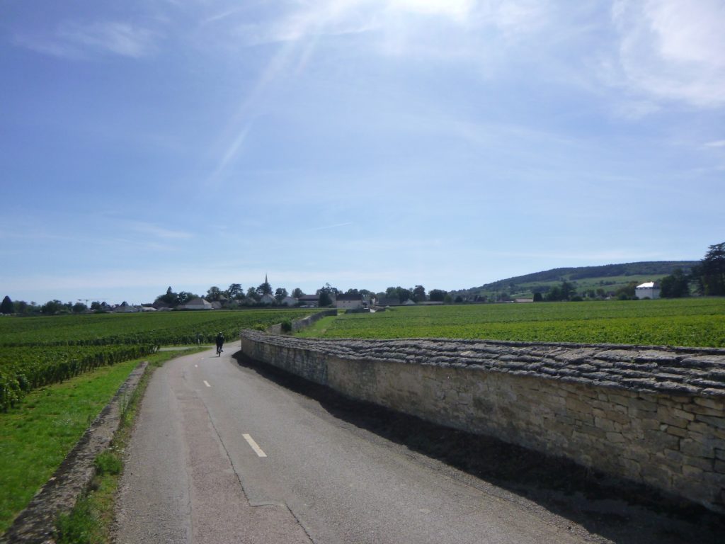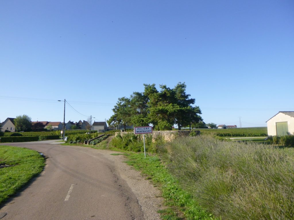 | Bientôt, au détour d’un regard, surgit Puligny-Montrachet, dont les toits apparaissent au milieu des vignes, posé dans la plaine comme un joyau serti au creux d’un écrin de verdure. |