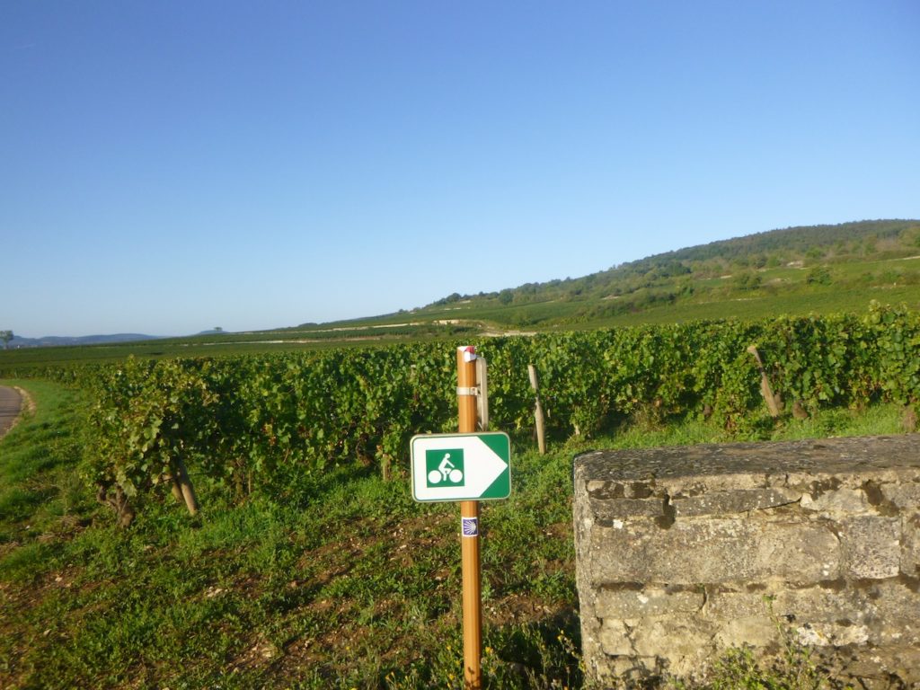 | Le parcours atteint enfin les portes des appellations Beaune. Là, le tracé se confond avec le véloroute, et l’œil exercé reconnaît les balises jaunes et rouges du GR76, rappelant que ce grand itinéraire partage aussi le passage. Le terroir s’annonce déjà comme une promesse. |