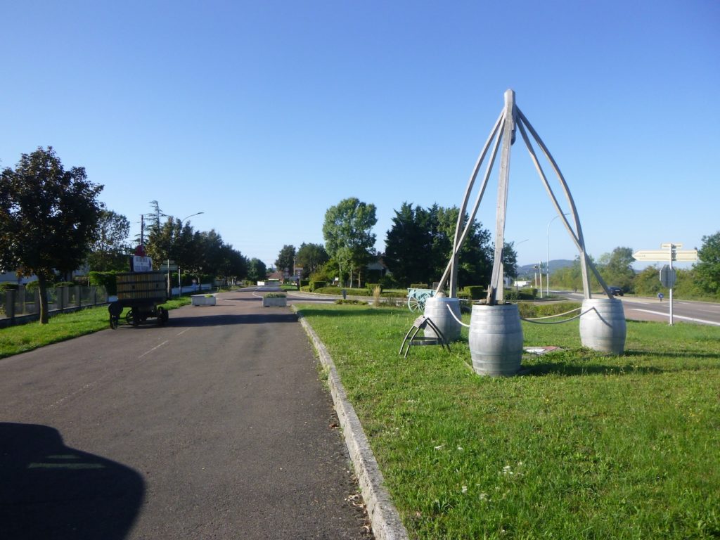 | La variante pénètre alors dans le cœur du village, comme pour en révéler l’âme. À l’entrée, une statue rend hommage aux vignerons, ces artisans de la patience et du temps, dressée tout près d’un caveau imposant, véritable temple dédié au vin. |