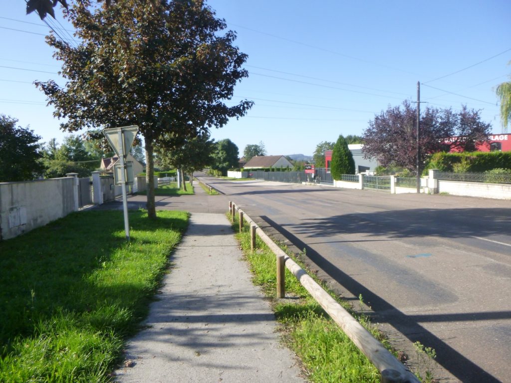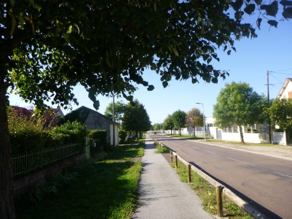 | Puis l’itinéraire continue, long, droit, sur un trottoir bordé d’arbres, au milieu des quartiers récents. C’est une marche régulière, monotone peut-être, mais qui prépare déjà l’esprit à l’arrivée prochaine. |