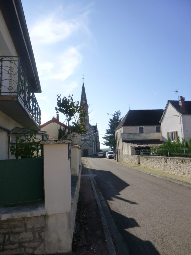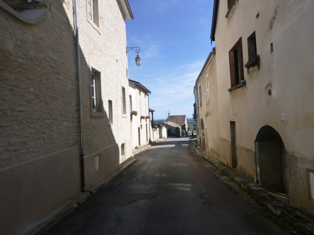 | C’est une rue en pente, qui s’abaisse doucement de l’autre côté du bourg. |