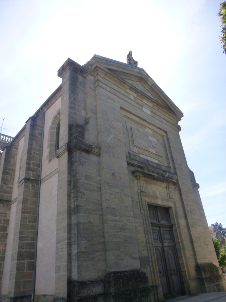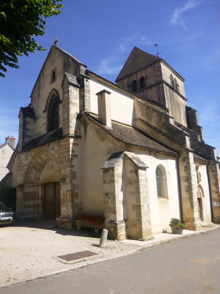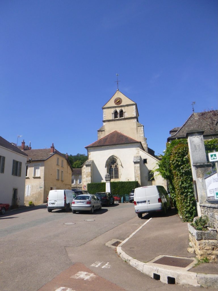| Le parcours contourne alors l’église, dont la silhouette imposante s’impose encore au centre du village comme une balise spirituelle et temporelle. |