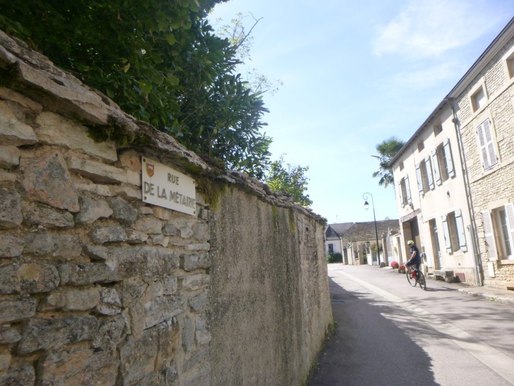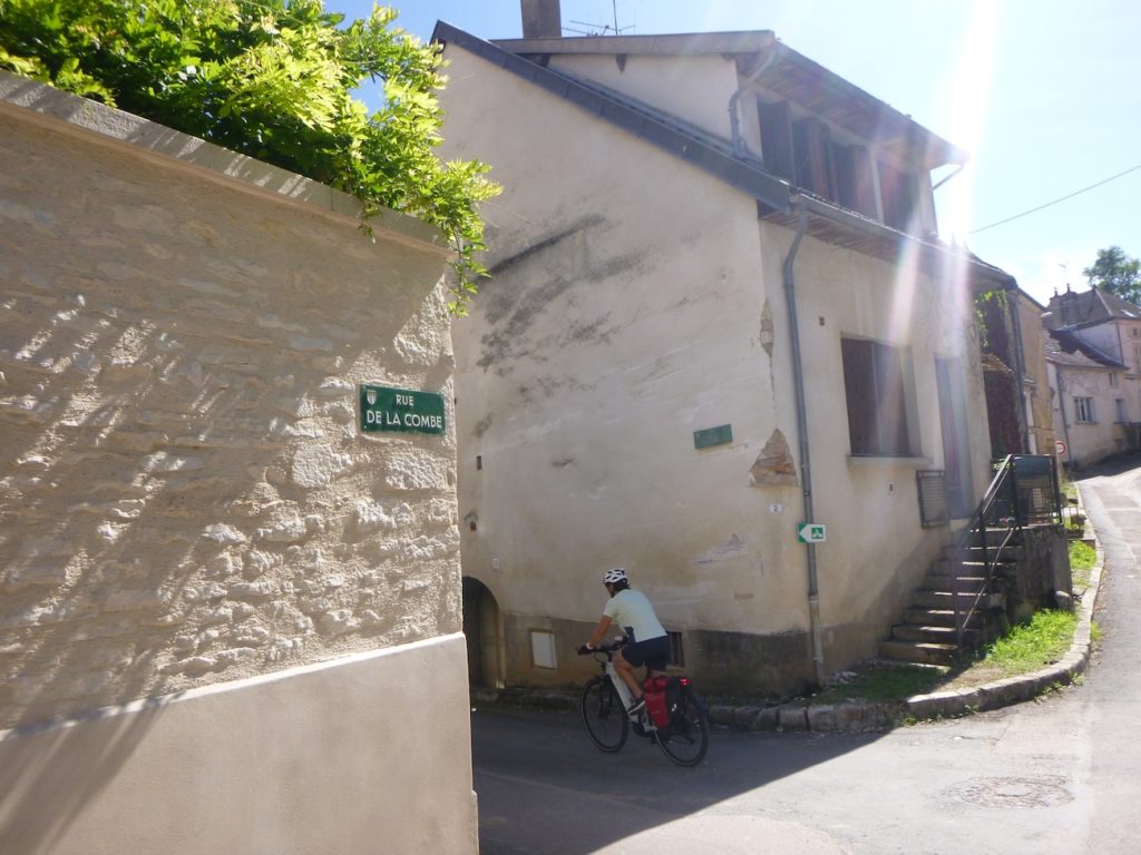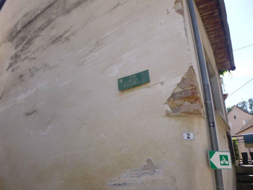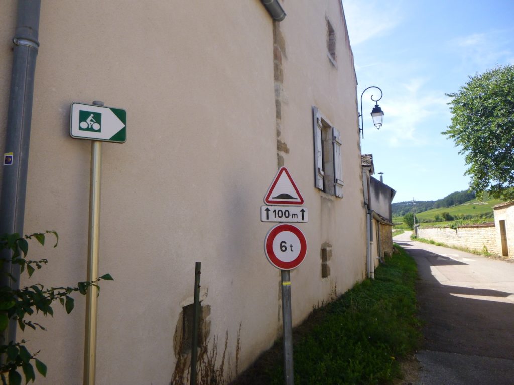 | Puis il s’engage dans la rue de la Combe, une étroite voie bordée de belles maisons vigneronnes, serrées les unes contre les autres comme pour se protéger du temps. Bientôt, la coquille et le balisage de la piste cyclable conduisent à gauche, vers la rue de la Chapelle. Le pas du pèlerin se laisse guider avec confiance. |