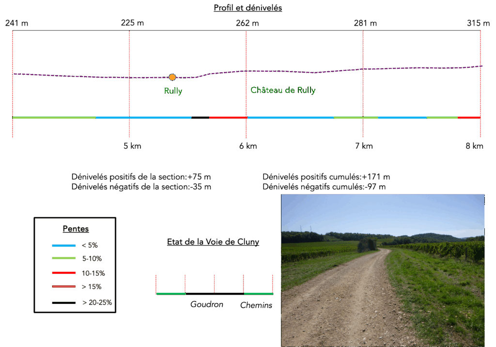 Aperçu général des difficultés du parcours : parcours avec parfois des pentes marquées en montée après Rully.