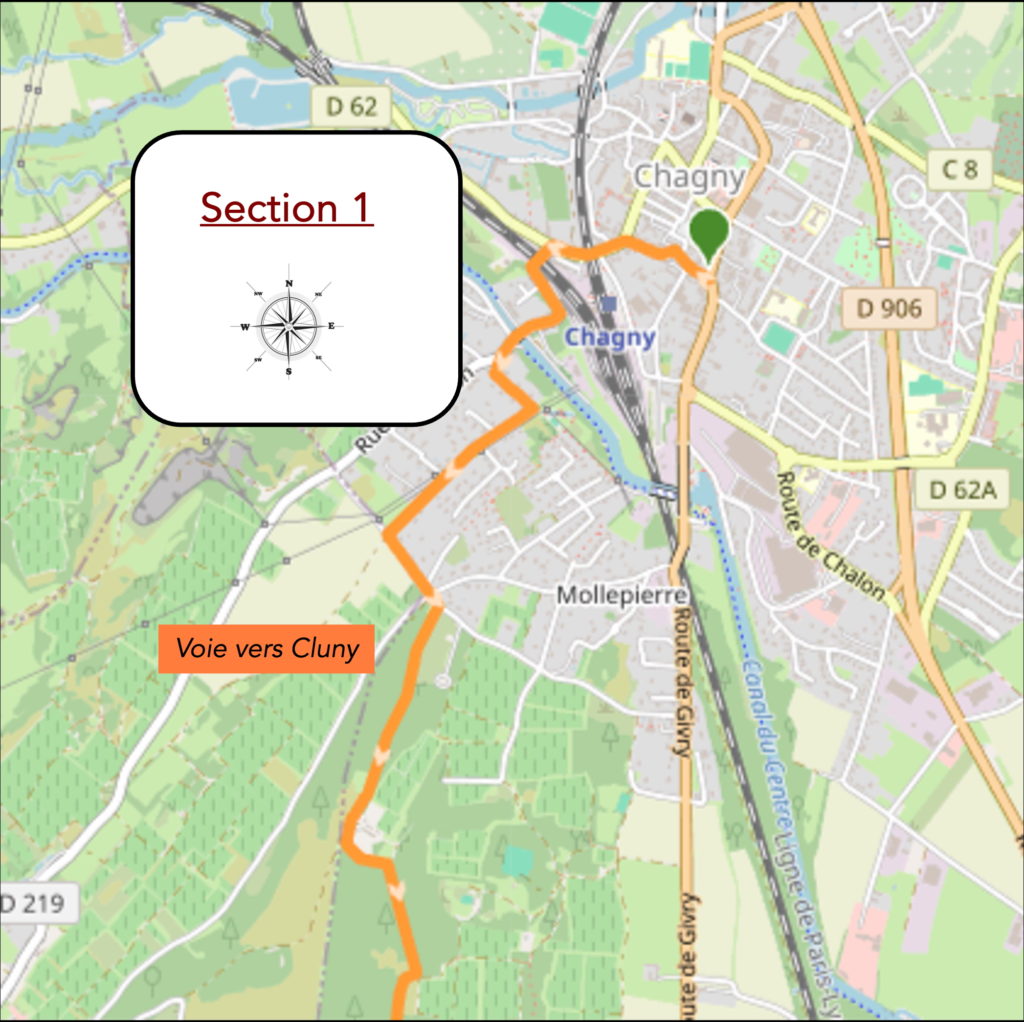 | Au centre de Chagny, point de flèche ni de borne pour indiquer la direction du Chemin de Compostelle. C’est une absence devenue coutume, comme si le pèlerin devait ici compter sur son intuition plus que sur des marques peintes. Pour ne pas vous égarer, le mieux est de partir de la Maison Lameloise, phare gastronomique et symbole éclatant de la ville, dont la réputation rayonne bien au-delà de la Bourgogne. De là, il vous faudra traverser la vaste et lumineuse place d’Armes, cœur battant de Chagny. |