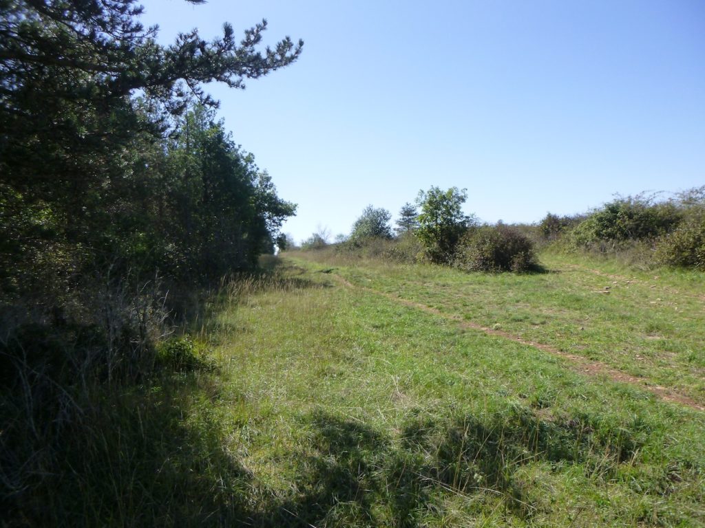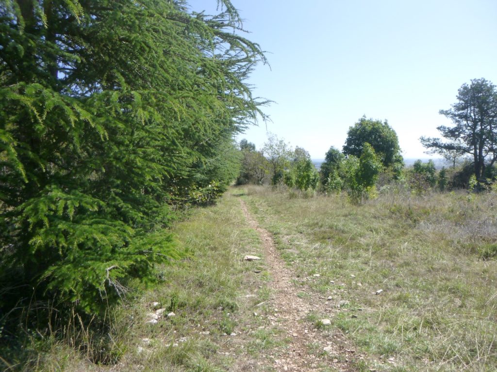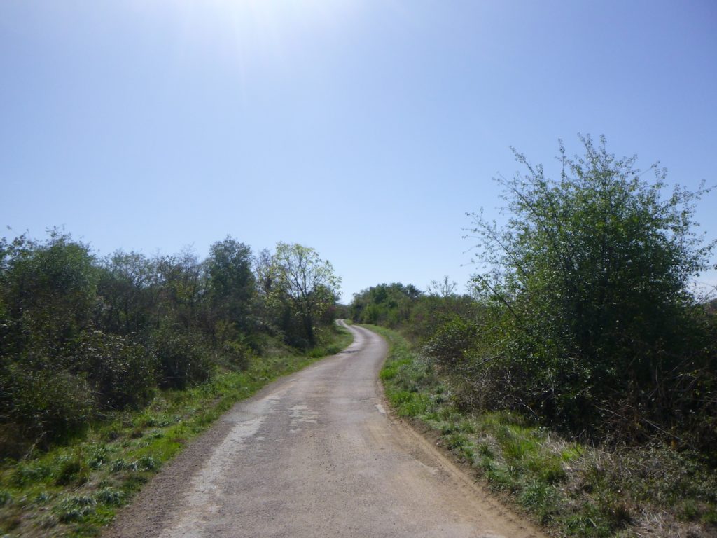 | Au niveau même du plateau, là où enfin le balisage du Chemin de Compostelle et celui du GR76 se rejoignent sans ambiguïté, le goudron s’efface. Il cède sa place à la terre battue, et avec elle, le vignoble renaît. |