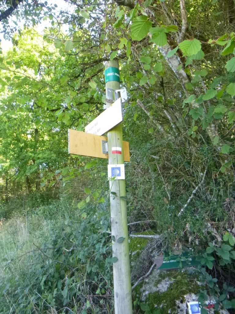 | Ici, la coquille a disparu, remplacée par les seules marques du GR. Ce fait pourrait sembler anodin, mais il ne l’est pas : rares sont ceux qui savent que le Chemin de Compostelle et le GR se confondent presque totalement en ces lieux. Même le petit guide des Amis de Compostelle omet de le préciser. C’est là l’un de ces mystères de la marche, où l’on apprend que suivre un signe, c’est déjà faire confiance à une histoire plus vaste que soi. . |