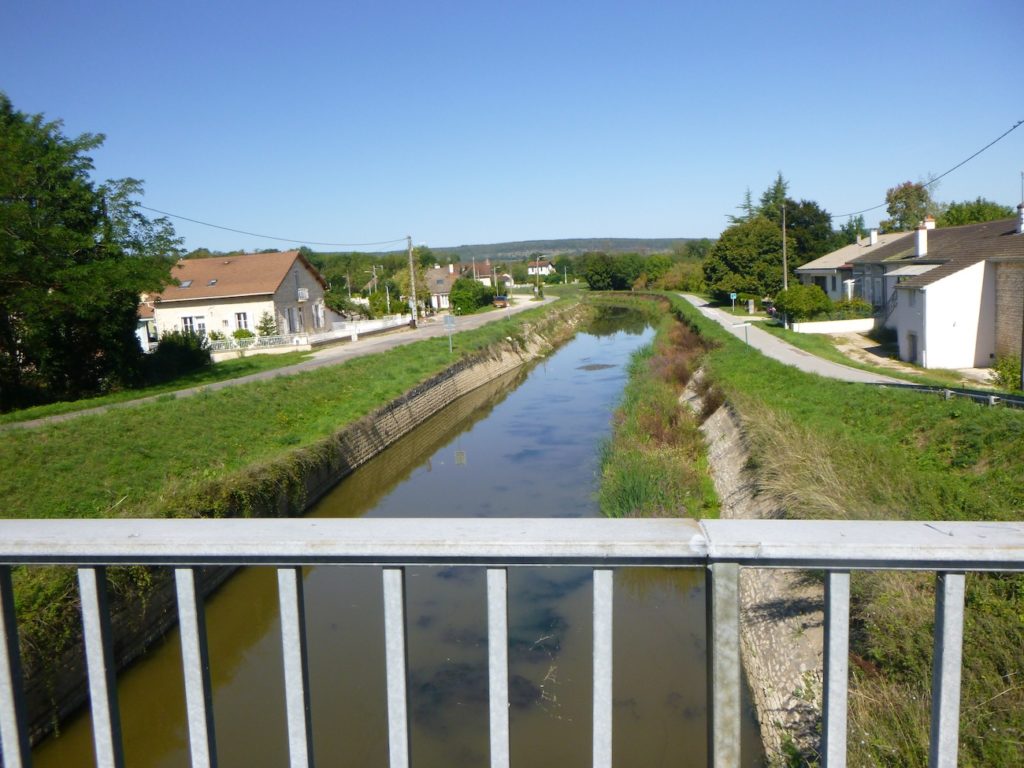 | Bientôt, c’est le Canal du Centre qui accompagne vos pas. La route longe un instant son cours tranquille avant de le franchir sur le Pont du Bouzeron. La tentation est grande de suivre la piste cyclable qui file sous l’arche, glissant le long des eaux calmes. Mais ce serait un leurre, une fausse route, car le parcours du pèlerin ne suit pas le canal : il s’en écarte, fidèle à son propre tracé. |