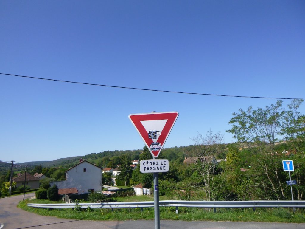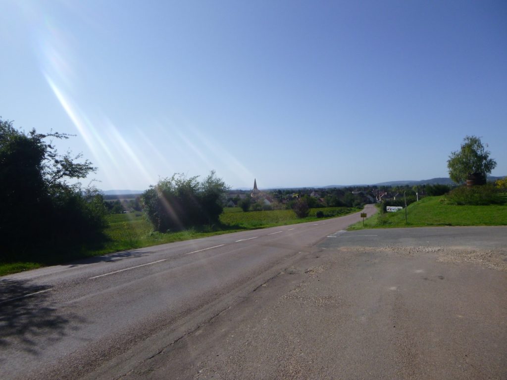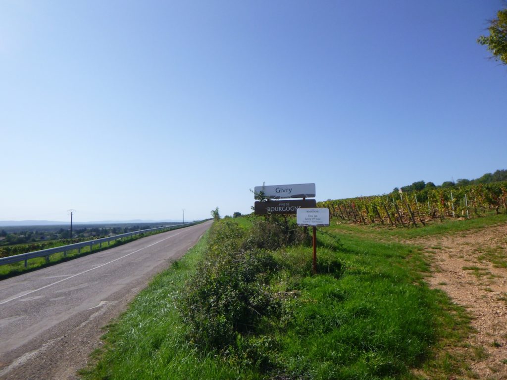 | Depuis Germolles, il reste encore trois kilomètres à parcourir avant de rejoindre Givry. Dès les premiers pas, on remarque que les vignes se sont comme effacées, disparues presque par enchantement, comme si le paysage avait voulu ménager une pause, un silence végétal avant la réapparition du vignoble. Le regard se perd alors sur des champs plus nus, des talus verts, des horizons moins marqués, où l’on croit entendre la terre reprendre son souffle. Pour votre bonheur, la circulation n’est pas effrénée sur l’axe. |