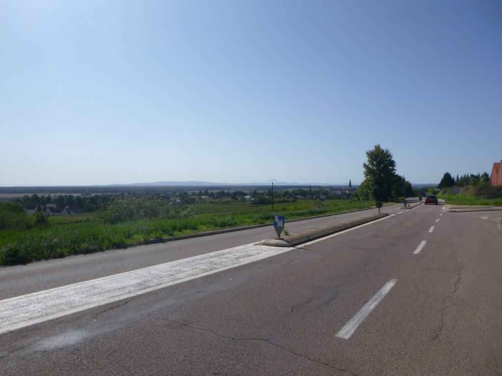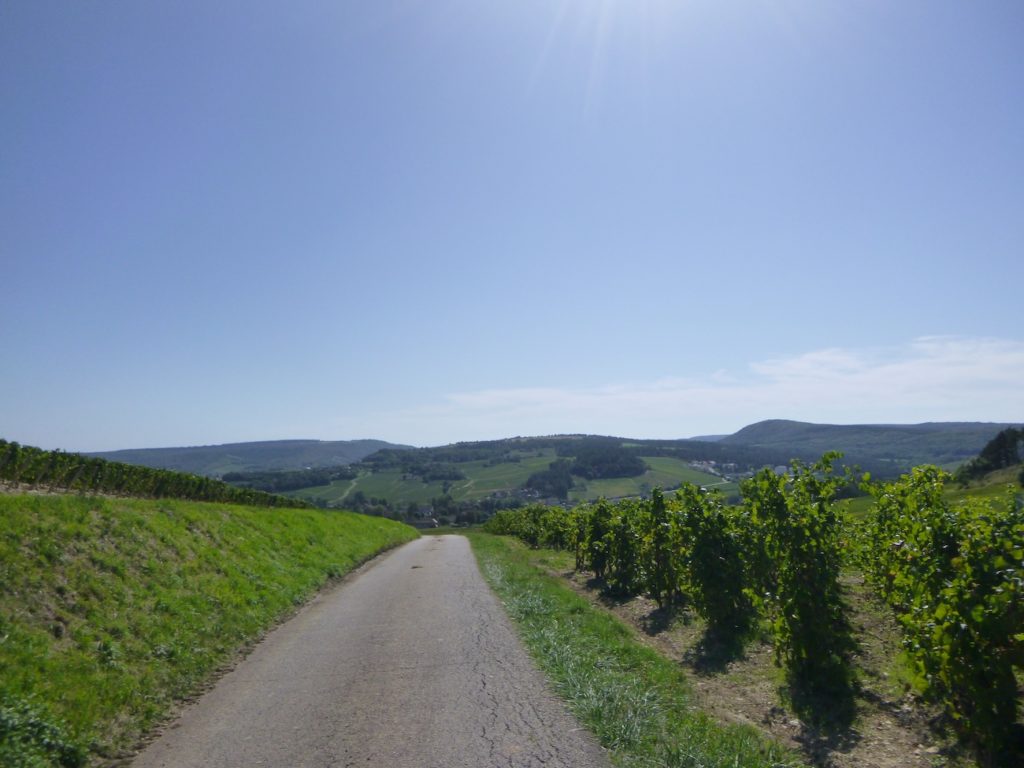 | La route se détache alors de la colline et amorce sa descente vers Mercurey. |