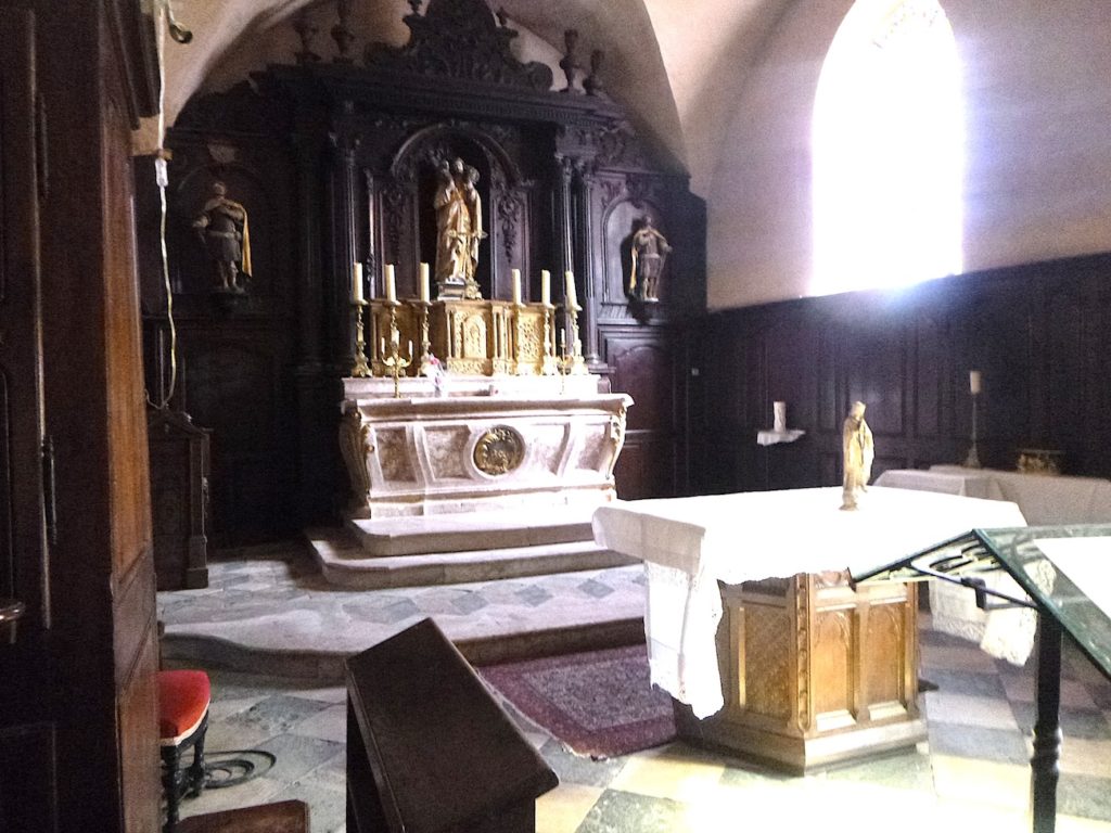 | Heureusement, l’ascension, aussi sévère soit-elle, demeure brève. La rue s’adoucit ensuite, s’élevant avec une pente plus clémente vers l’église St Laurent. Ce sanctuaire, dominant le village, date du XIIIe siècle. Ses pierres, patinées par le temps, témoignent de nombreuses transformations au fil des âges, reflets de la patience et de la foi des hommes qui l’ont entretenue. |