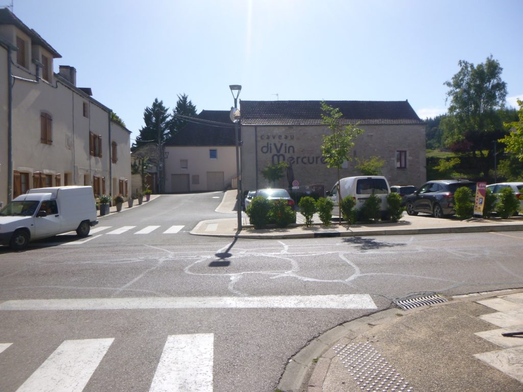 | Mercurey ne se donne pas des allures de cité, mais de village vigneron. C’est une simple enfilade de maisons alignées le long de la départementale. On y trouve cependant un hôtel et un restaurant, oasis bienvenue pour le marcheur en quête d’une halte. Car Mercurey, malgré la notoriété de ses vins, ne vit pas du tourisme : ses commerces sont rares, ses ruelles tranquilles. Les habitants, pour les besoins plus larges, se rendent à Chalon-sur-Saône, grande ville commerçante située à une dizaine de kilomètres seulement. |